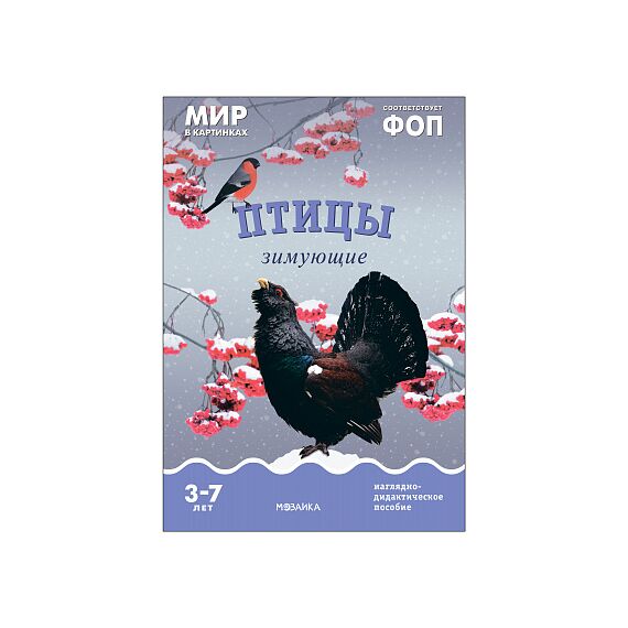 Мир в картинках. Птицы зимующие. ФГОС. ФОП Серия наглядно-дидактических пособий «Мир в картинках» предназначена для групповых и индивидуальных занятий с детьми 3–7 лет в детском саду, начальной школе и дома.