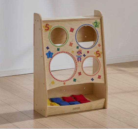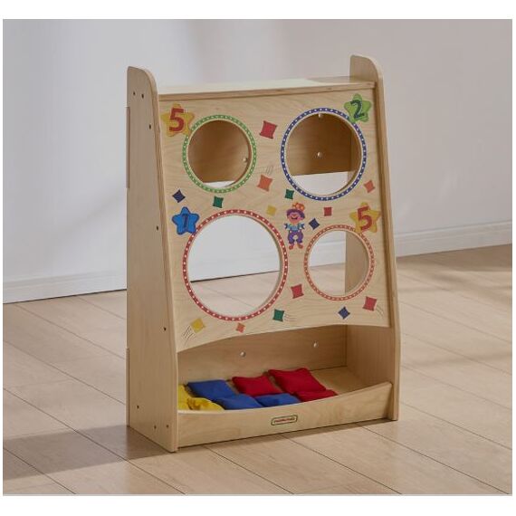Принцип игры: мешочки забрасываются в отверстия мишени, затем извлекаются из нижнего отсека; Образовательный потенциал: