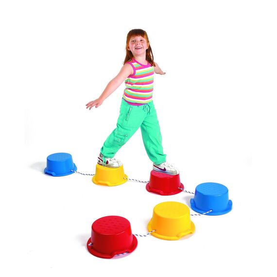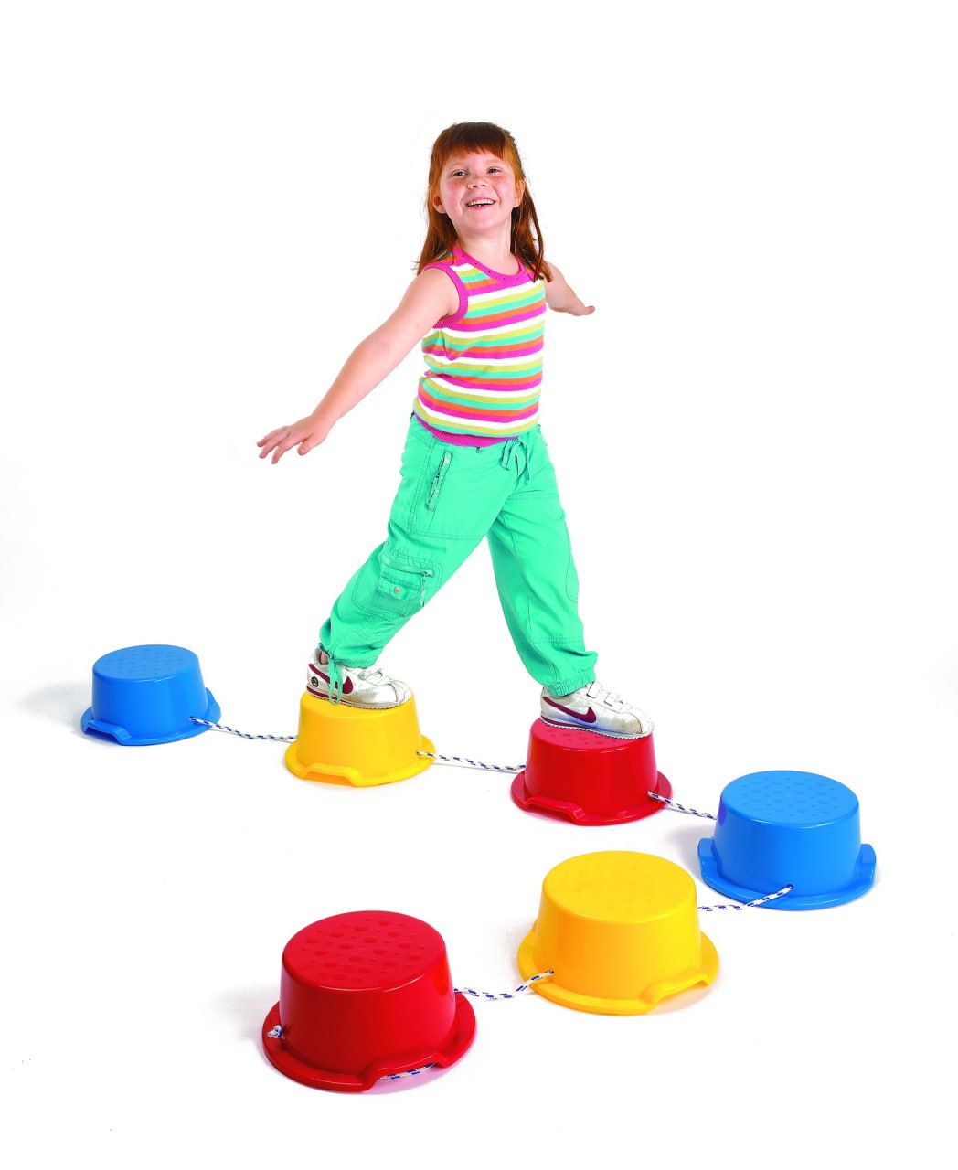 Набор «Дорожка из камешков» состоит из 6 деталей 3-х цветов. Прочные пластиковые «камешки» (полые внутри) соединены между собой регулирующимися веревками.
