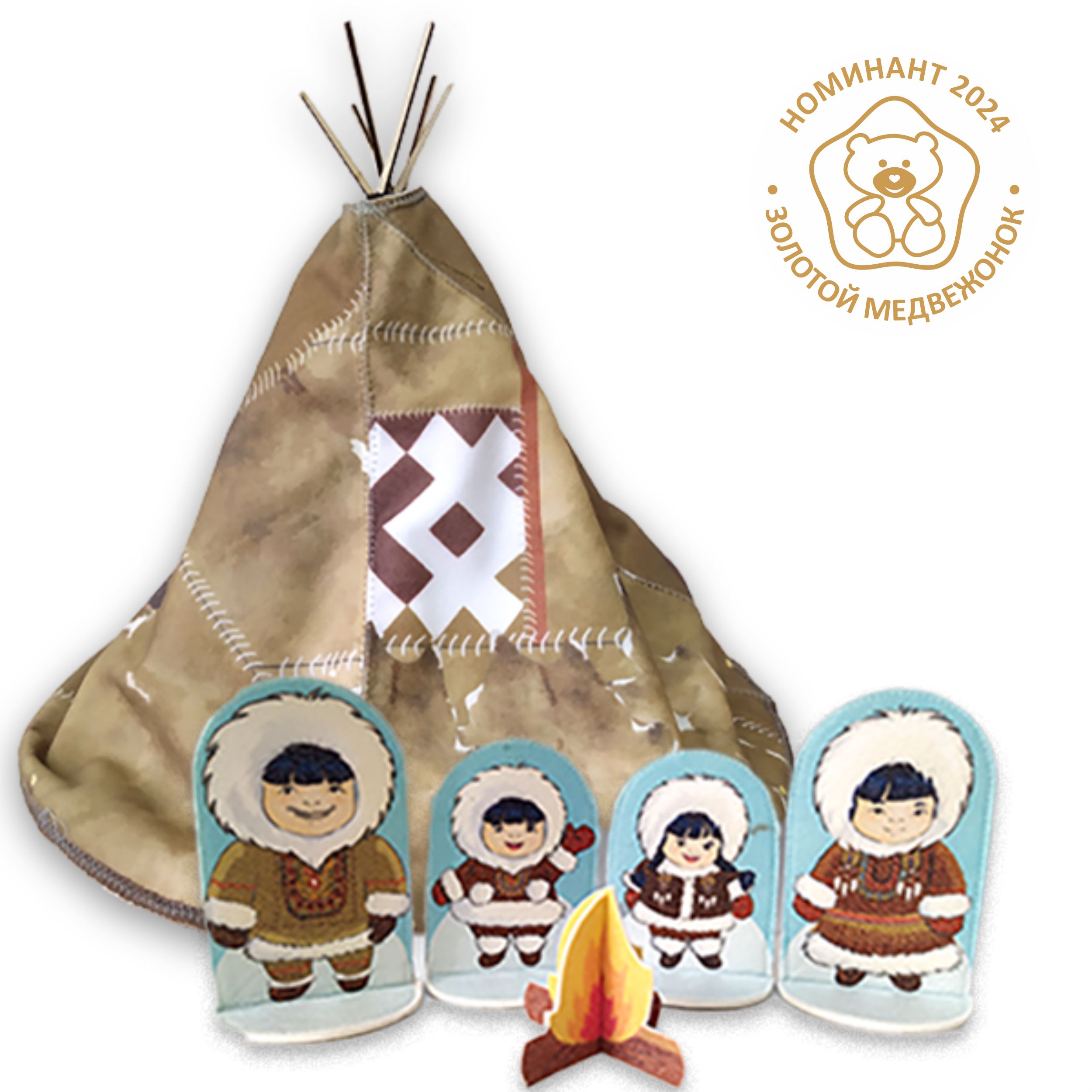 Чум — это каркасное переносное жилище, состоящее из шестов, брезента или бересты летом и меховых покрышек зимой. Состоит из каркаса и стен. Каркас чума изготовлен из фанеры толщиной 3мм. Конструкция каркаса позволяет многократно разбирать и собирать чум без потери прочности. Инструкция по сборке прилагается. Покрытие чума выполнено из трикотажа с нанесенным методом сублимационной печати национальным орнаментом.