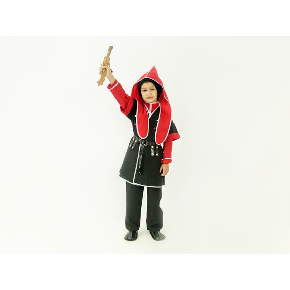 Материал: рубаха и башлык - смесовая ткань, черкесска и брюки - габардин 100% полиэстер, пояс - искусственная кожа, головной убор - драп 100% полиэстер, смесовая ткань - 35% хлопка, 65% полиэстер.