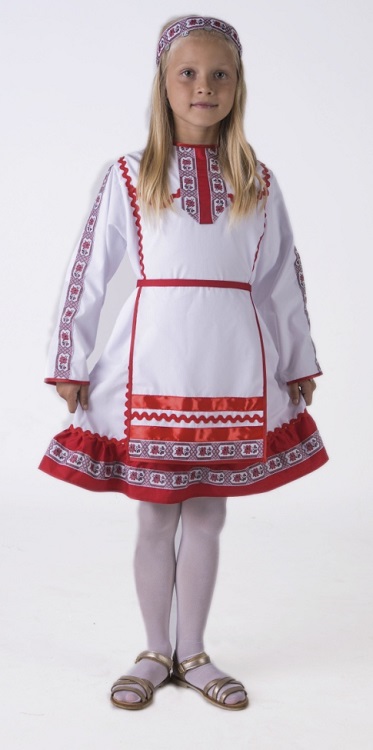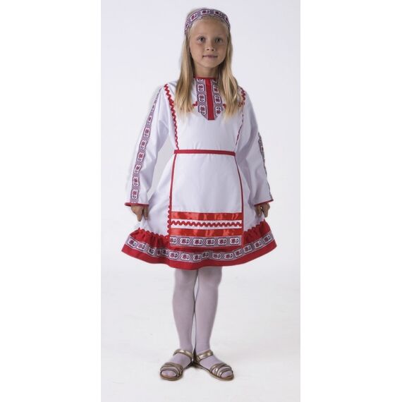 Марийский национальный детский костюм (девочка) платье + фартук + головной убор (р-ры 134-146)