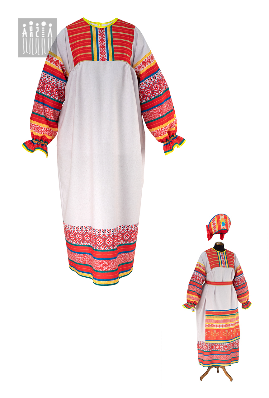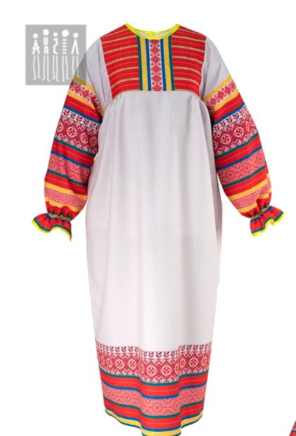 Женская Фольклорная рубаха, изготовлена из плотной ткани с высокой стойкостью к изнашиванию — Габардин. Материал не растягивается, не деформируется после стирки, способен хорошо сохранять форму.