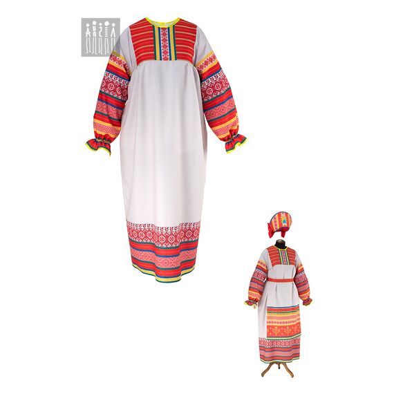 Длинная рубаха служит основой для русских народных костюмов из коллекции "Русская Фольклорная". Создавая образы для выступлений в народном стиле, на конкурсах, тематических занятий. Рубаха, прямого силуэта, свободной формы, на кокетке спереди и сзади. По верхнему срезу подола рубахи, выполнена сборка.
