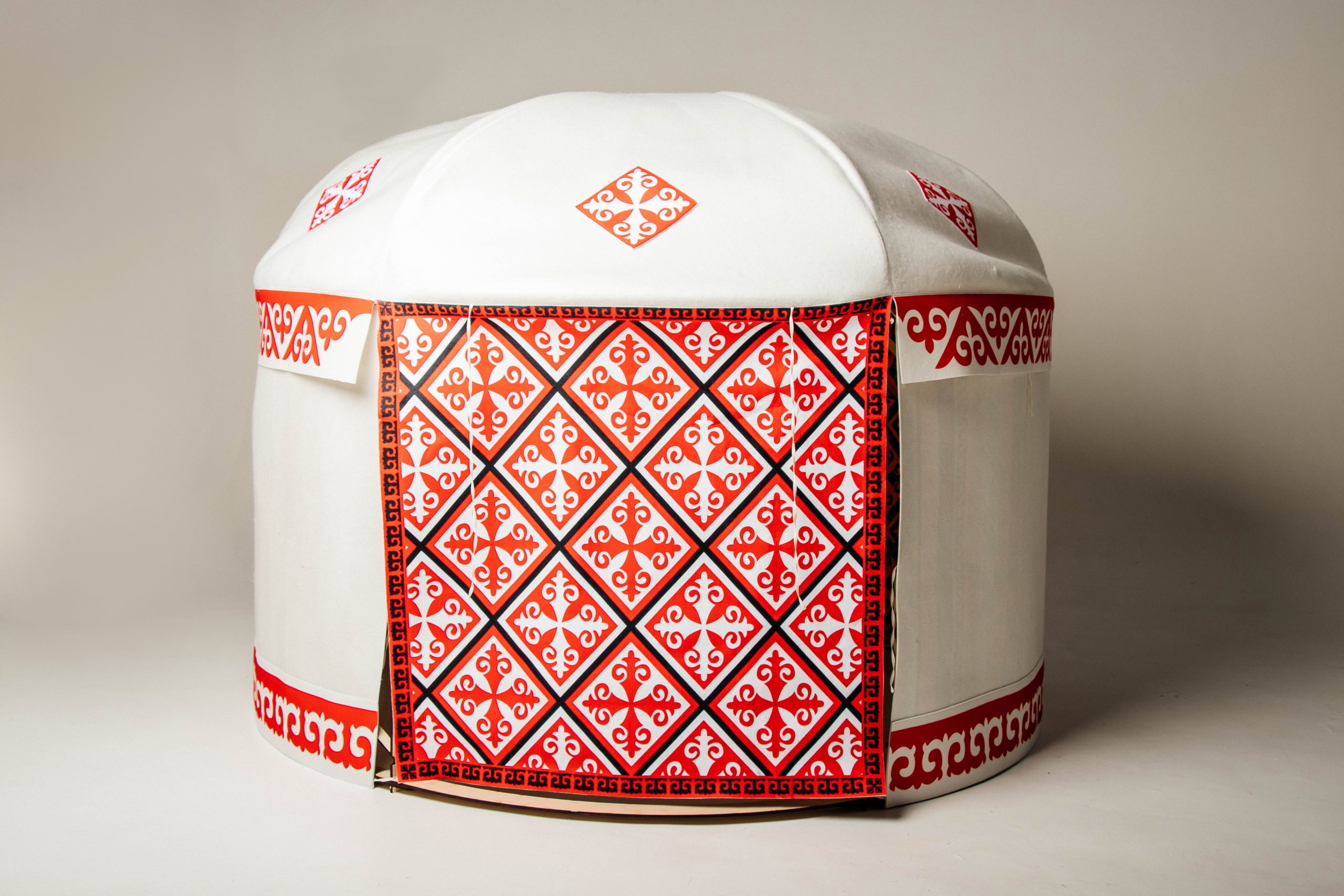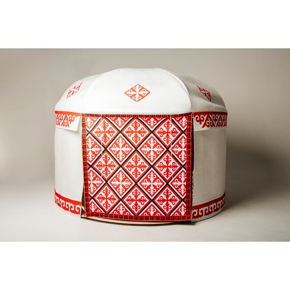 Юрта — переносное жилище кочевых народов, теплое в стужу и прохладное в жару. Состоит из каркаса, стен и крыши. Каркас юрты изготовлен из фанеры толщиной 6мм. Конструкция каркаса позволяет многократно разбирать и собирать юрту без потери прочности. Инструкция по сборке прилагается. Покрытие юрты выполнено из фетра с нанесенным методом сублимационной печати национальным орнаментом.