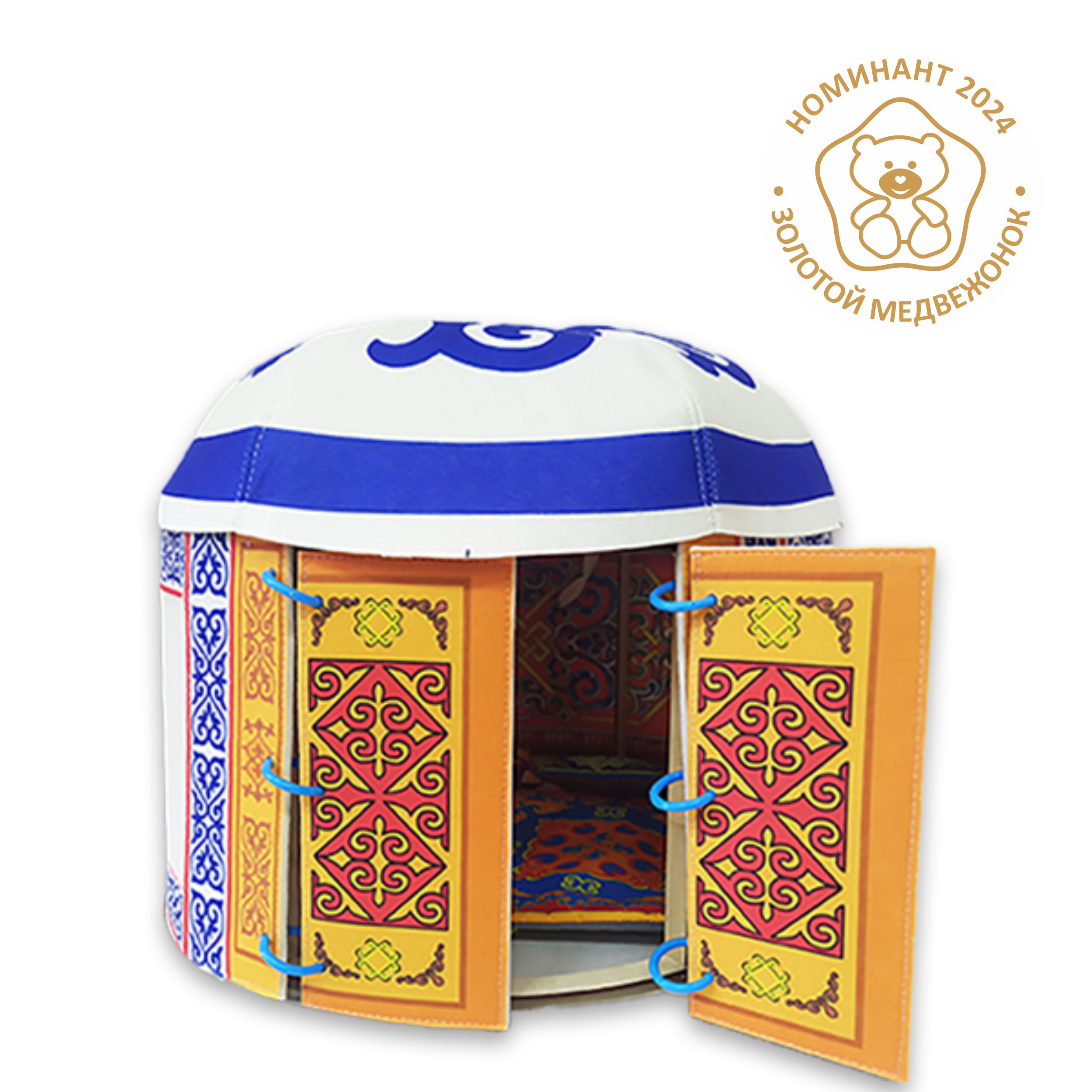 Юрта — переносное жилище кочевых народов, теплое в стужу и прохладное в жару. Состоит из каркаса, стен и крыши. Каркас юрты изготовлен из фанеры толщиной 3мм. Конструкция каркаса позволяет многократно разбирать и собирать юрту без потери прочности. Инструкция по сборке прилагается. Покрытие юрты выполнено из фетра с нанесенным методом сублимационной печати национальным орнаментом. В комплект входят ковры, подушки комплект мебели (стол, сундук, люлька). Юрта малая дидактическая предназначена для проведения игровых и образовательных занятий по национальной тематике.