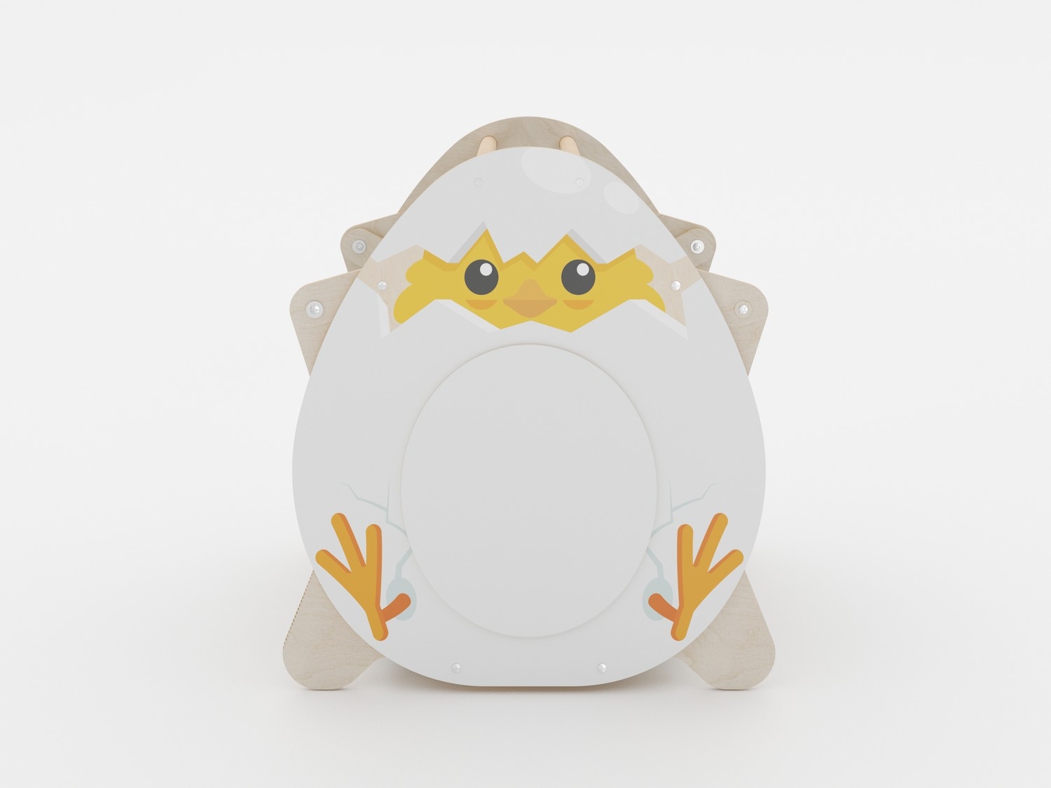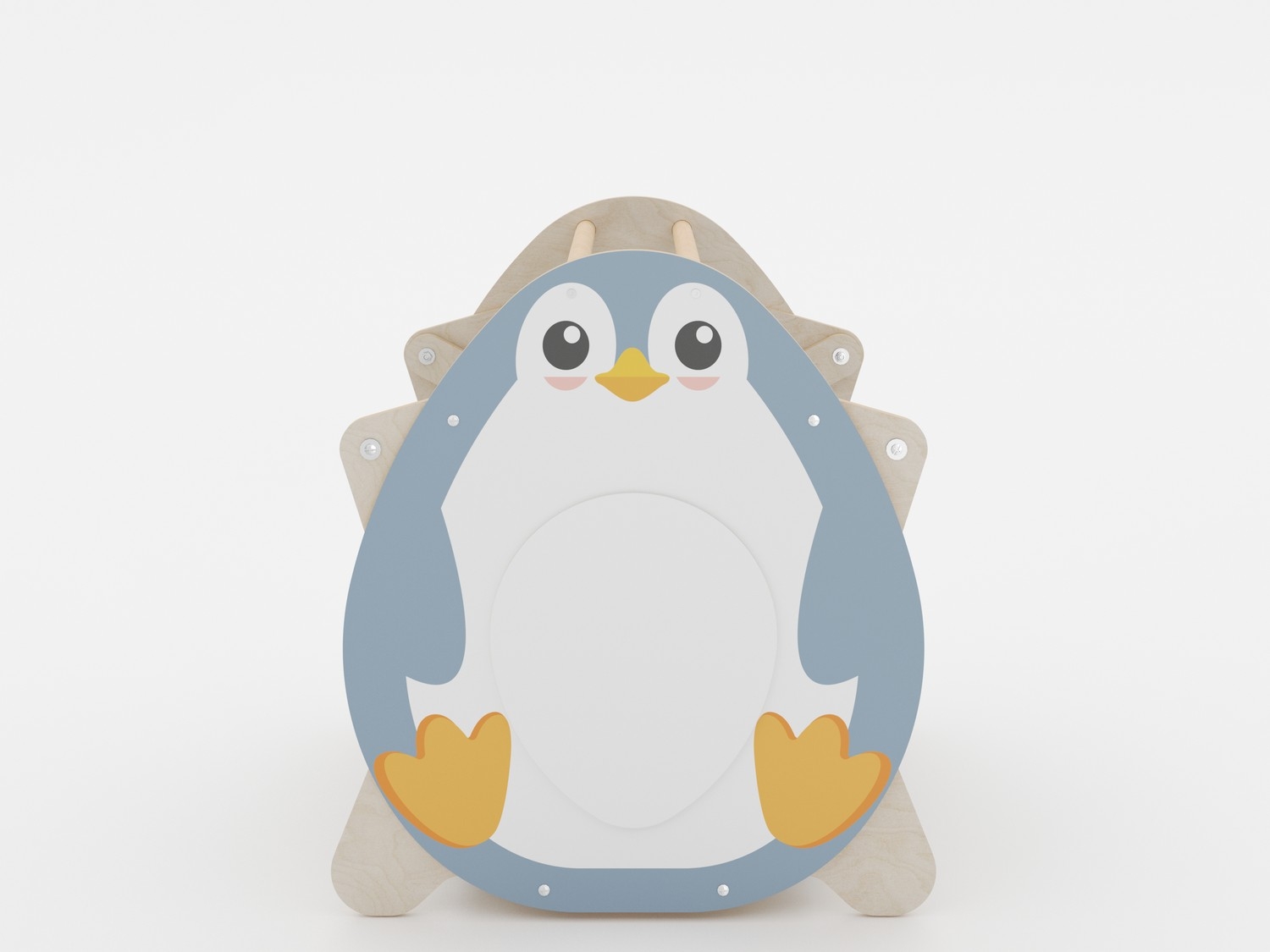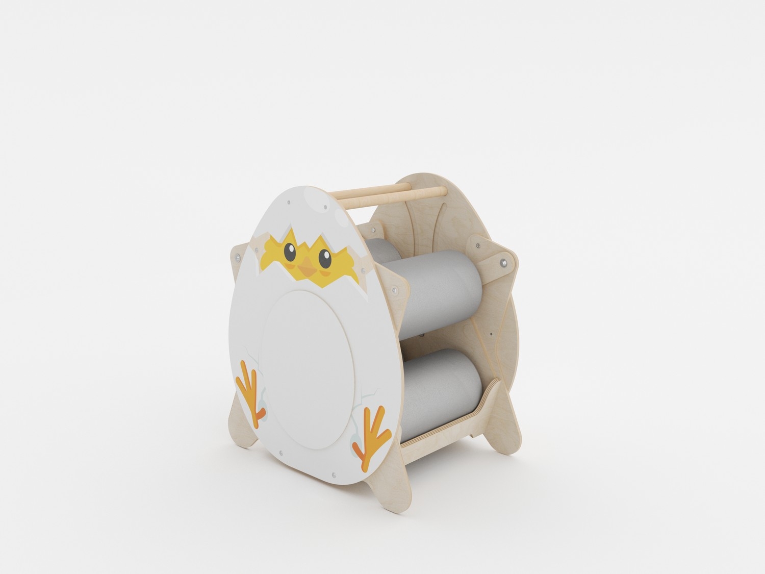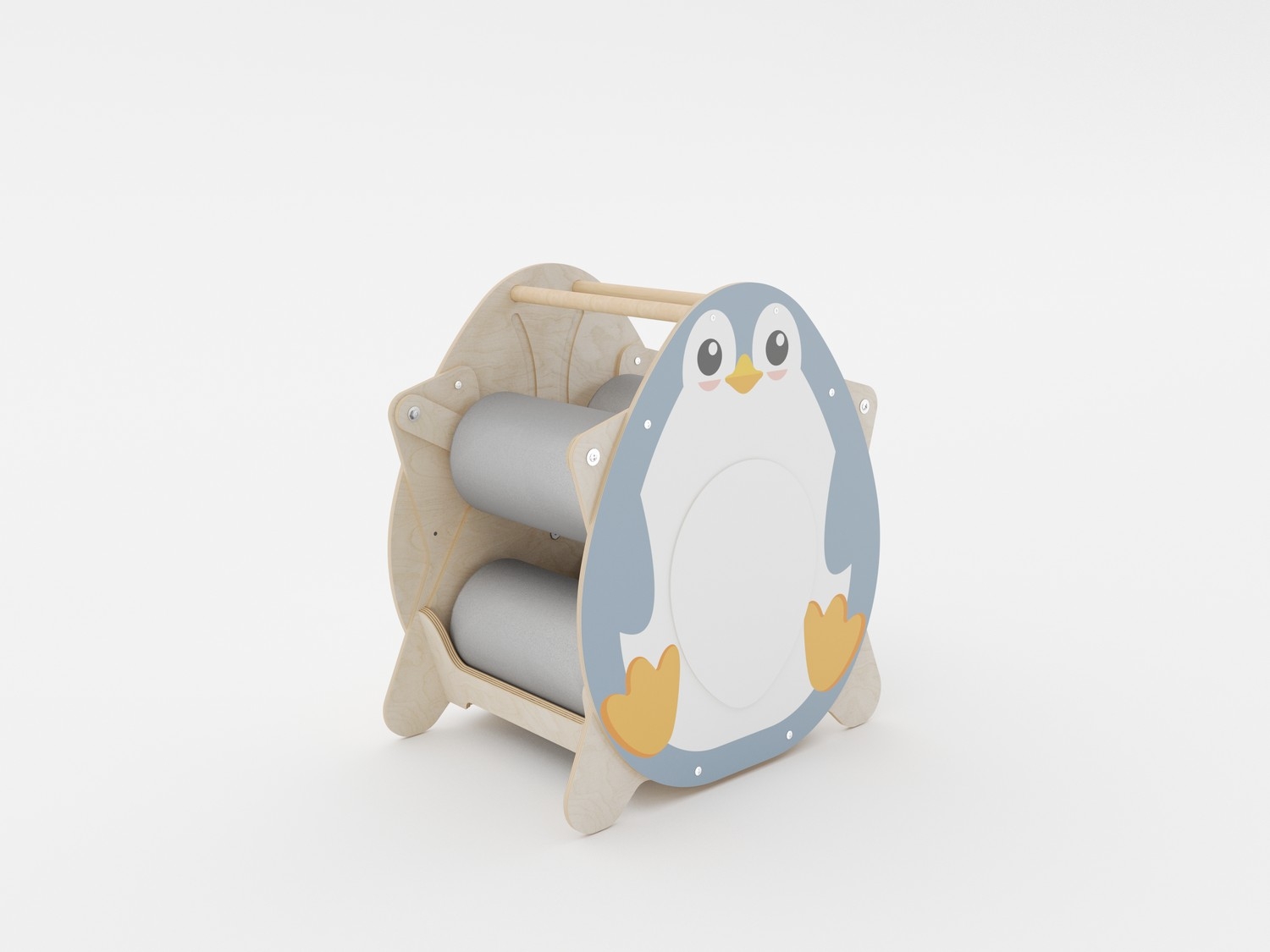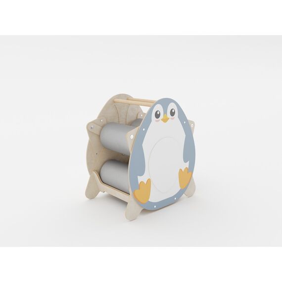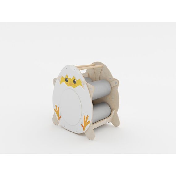 Корпус изделия выполнен из прочной фанеры с безопасным для детей двухкомпонентным лаковым покрытием. На боковые панели методом УФ-печати нанесены яркие изображения стойкими к выцветанию красками. Валики обшиты износостойкой тканью Оксфорд. Благодаря ее водоотталкивающим свойствам поверхности тренажера легко моются. Удобные ручки позволяют легко переносить устройство в нужное место. Дизайн изделия вызывает интерес у детей различных возрастных групп.