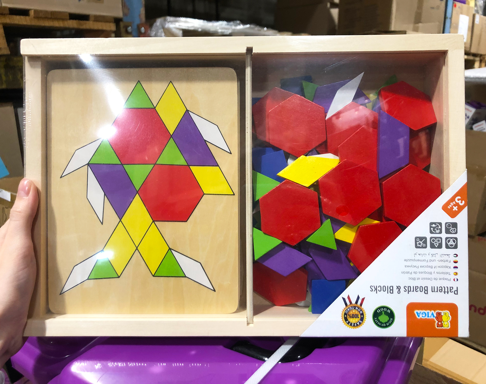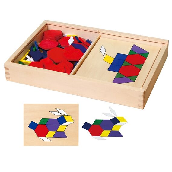 Эта игра отлично походит для знакомства ребенка с формами и цветами, а также способствует развитию мелкой моторики рук и воображения. В наборе 148 деталей разных форм и цветов, 10 шаблонов для собирания мозаичных картинок.