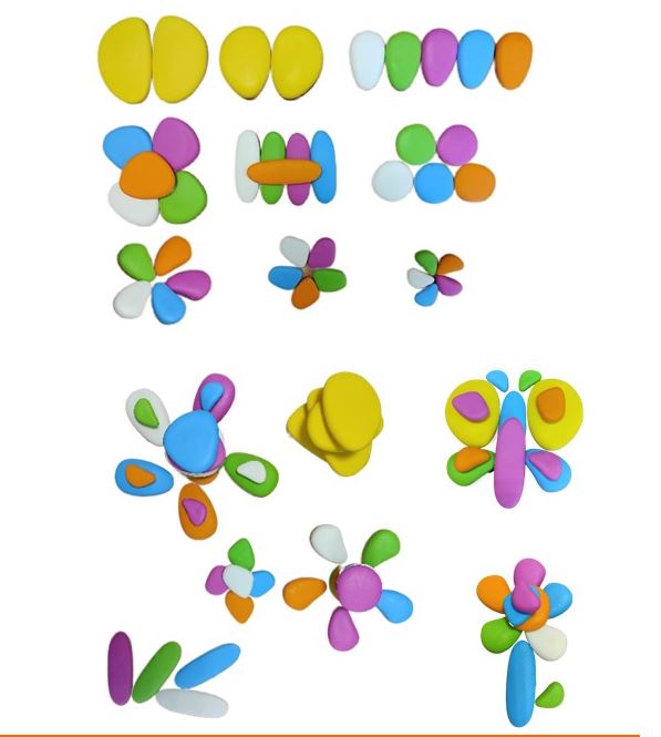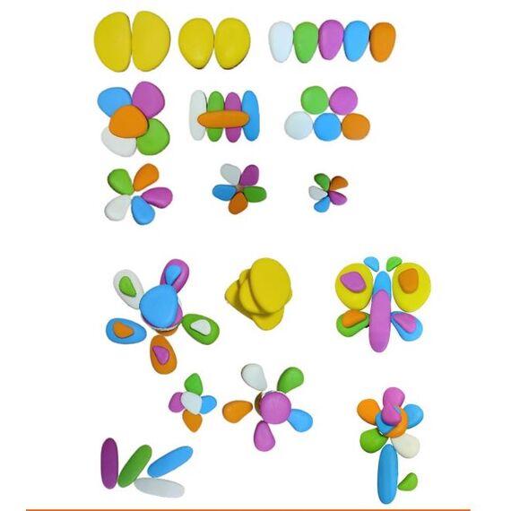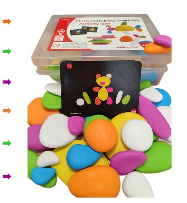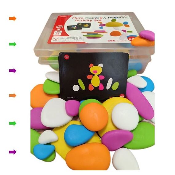 Радужные камешки "Флюро" 9 формы, 6 цветов, 39 шт. Набор с карточками