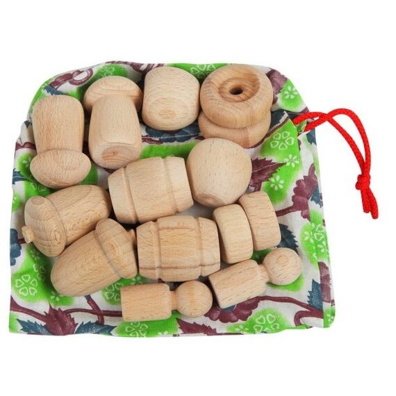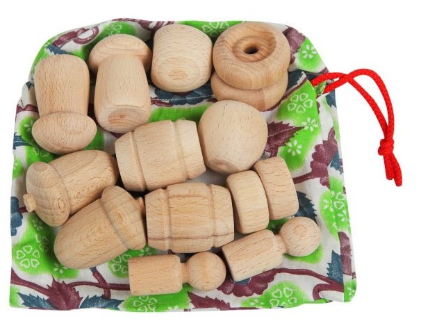 В комплект входит: фигурки разной формы – 14 штук и тканевый мешочек – 1 штука. Цель игры – научить малыша узнавать предметы, называть, считать.Отличная игра для тактильного сенсорного развития.