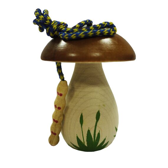 Расписной гриб Боровик с шестью отверстиями в шляпке. Помогает освоить навыки шнуровки, развивает мелкую моторику рук. Шнуровка удобная, грибок можно держать за ношку. Прилагается шнурок с деревянной иглой в виде червячка.