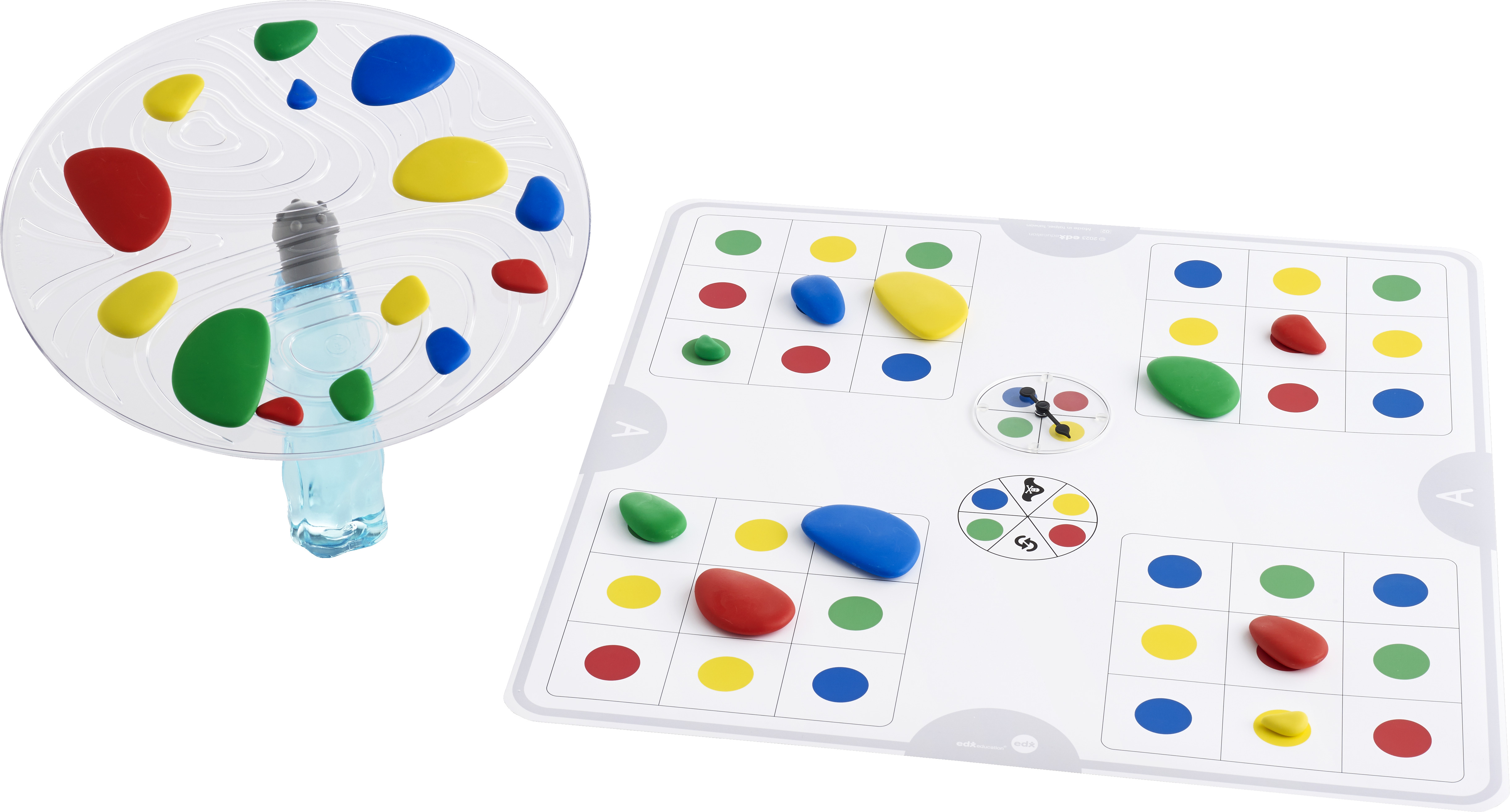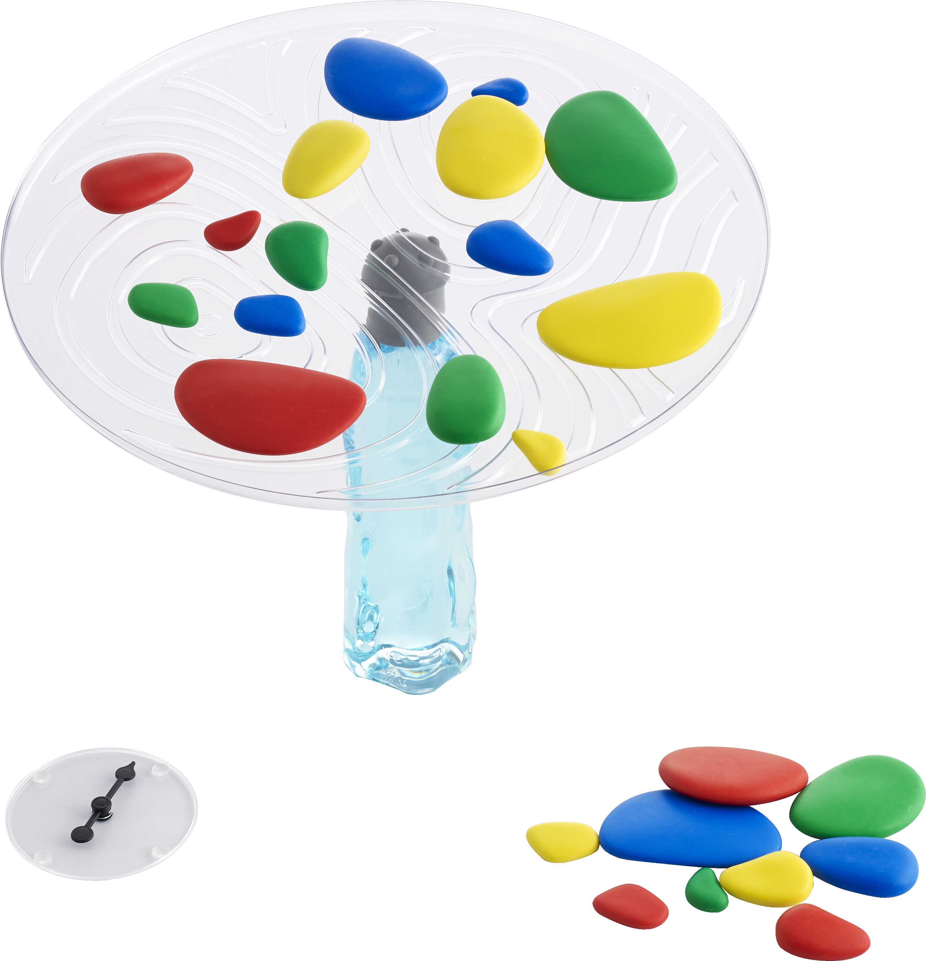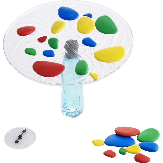 Набор радужные камешки – способствует развитию мелкой моторики и сенсорики, знакомит с понятиями "цвет" и "размер", а также способствует развитию творческого и логического мышления. Развивает равновесие и координацию движений. Цель игры состоит в том, чтобы дети осторожно снимали радужные камешки с «балансировочной пластины» (не доводя ее до падения), которые соотносятся к детской игре в бинго. Увлекательная игра с 4 различными вариантами игры в бинго, которая мотивирует детей к выработке стратегии при изучении ранних математических навыков.