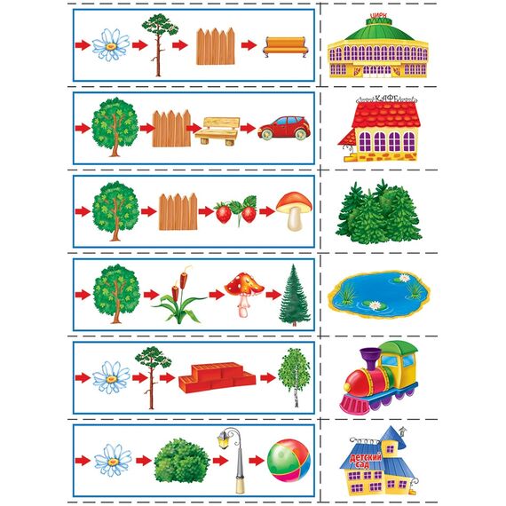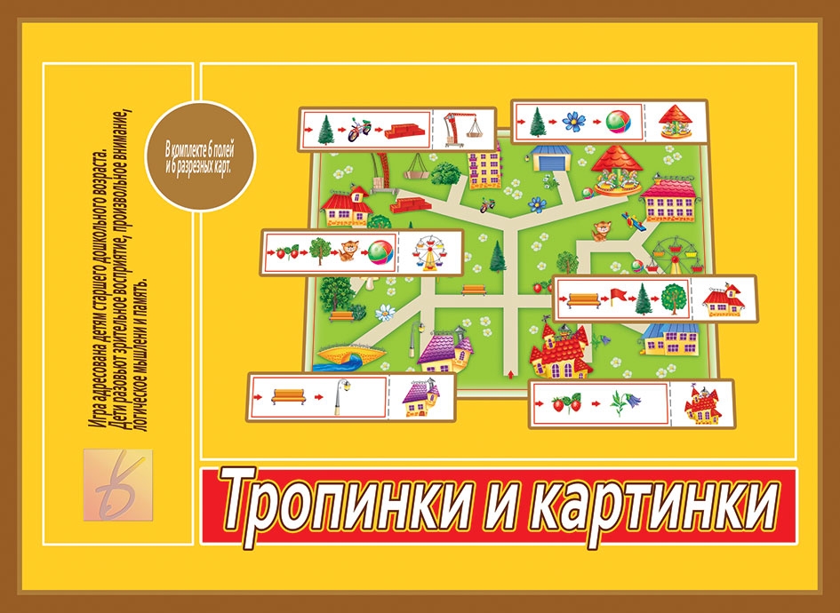 Комплектация: 36 карточек со схемами тропинок, 36 карточек с рисунками и 6 больших карт.