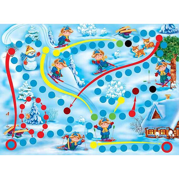 Комплектность: 1.игровое поле-1шт. 2.игральный кубик-1 шт. 3. фишки-4 шт. 4. правила.