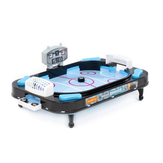 Набор «Мини-хоккей» (в коробке) — это игровое поле, которое устанавливается на четырёх ножках. Размеры поля: длина 33 см, ширина 22 см, высота 14 см. Задача игрока в мини-хоккей — забить шайбу в ворота соперника, нажимая на соответствующие кнопки по краям поля. Подсчёт голов осуществляется с помощью механического табло. В комплект также входят наклейки, шайбы и анкеты игроков, куда можно вносить результаты матчей.