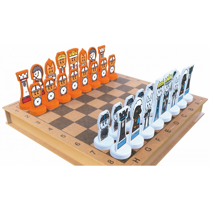 - Шахматные фигуры серого и оранжевого цвета.