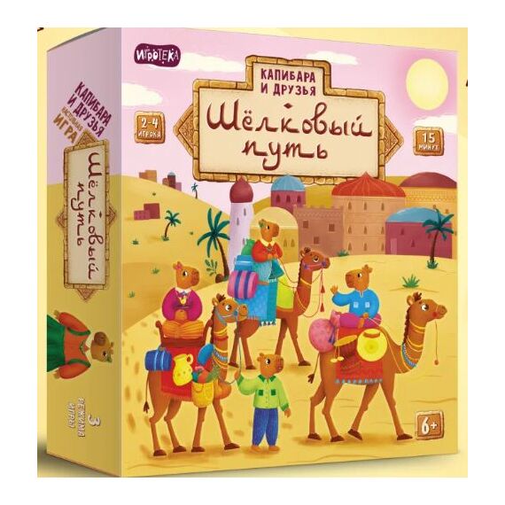 Настольная игра "Капибара и друзья: Шёлковый путь" - это увлекательная и развивающая игра для детей и всей семьи. Она предназначена для игроков от 6 лет и старше, и в ней могут участвовать от 2 до 4 человек.