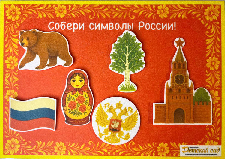 Таким образом, панно из фетра с символами России на липучках является практичным и удобным инструментом для образовательных и развивающих целей.