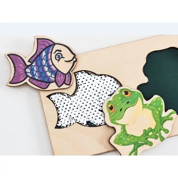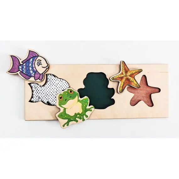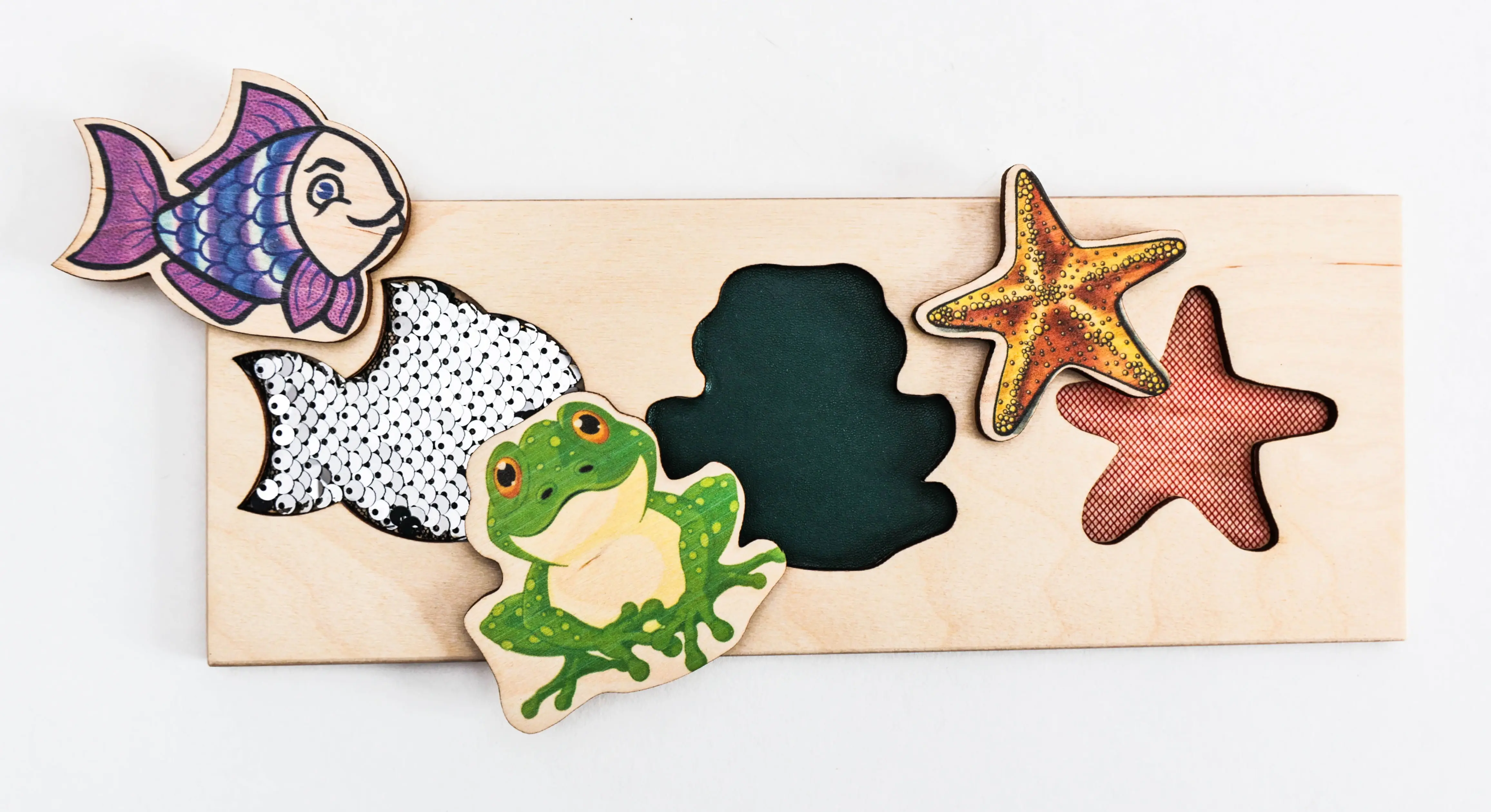 Доска с вкладышами “Водные обитатели” состоит из доски-основы и 3 вкладыша по теме “Обитатели воды”. Под съемными элементами тактильная поверхность, соответствующая объекту.