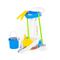 В наборе имеются: швабра, большая и маленькая щётки, совочек, ведро с отжимом. У каждого прибора - своё место для хранения (для этого на тележке предусмотрены специальные платформы и ниши). Тележка на колёсах, поэтому её легко перемещать.