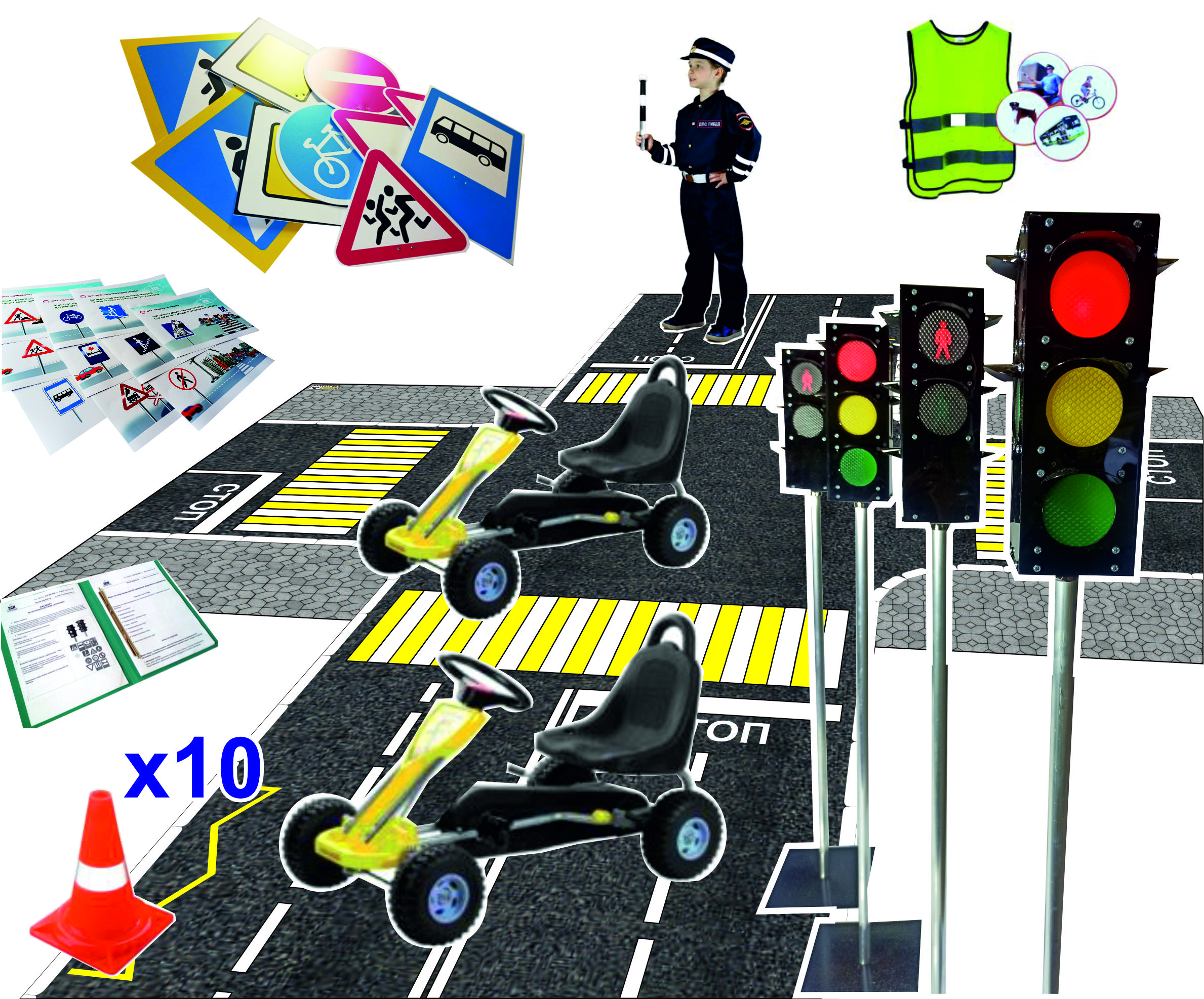 - Комплект дорожных знаков с креплением 10 шт.