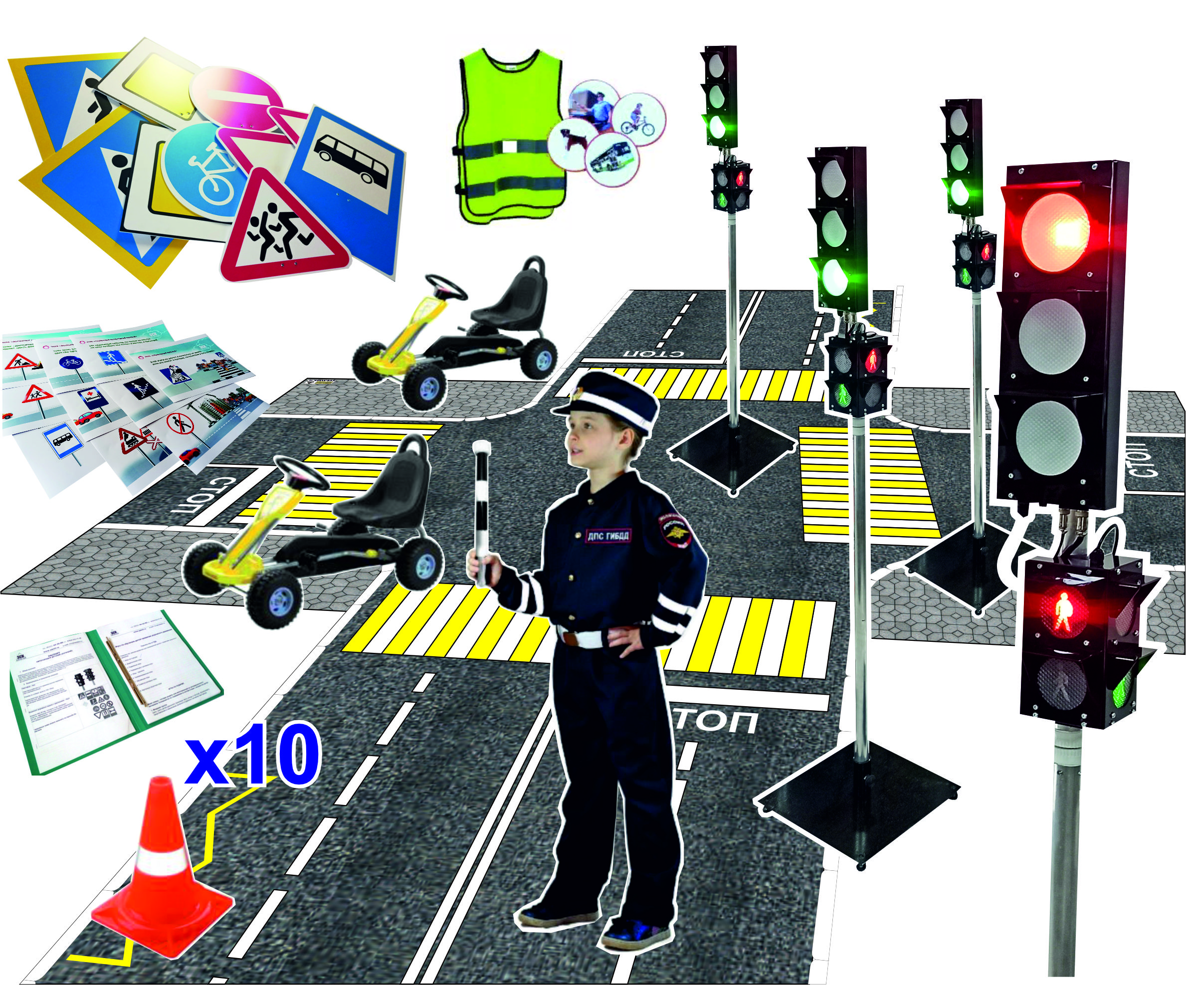 - Комплект дорожных знаков с креплением 10 шт.