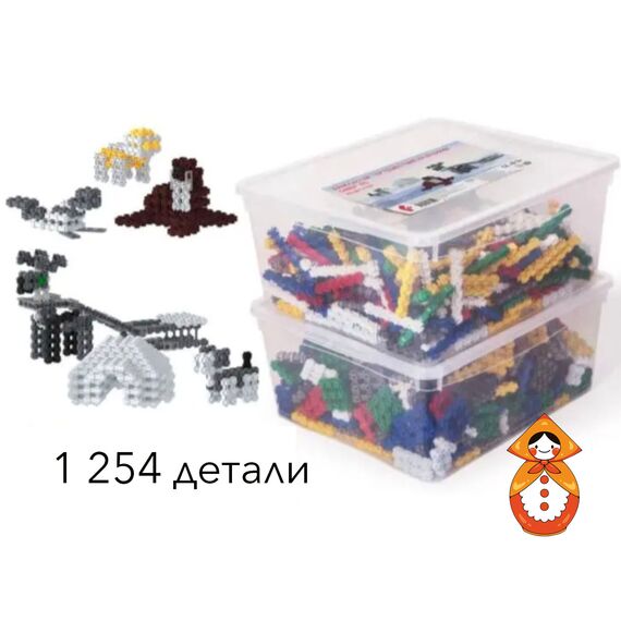 - 1254 детали конструктора из высококачественного АБС пластика, карты-схемы сборки моделей(в электронном виде),программа конструирования и моделирования Фанкластик 3 Д Дизайнер.
