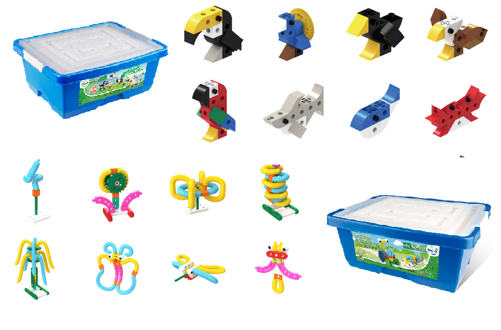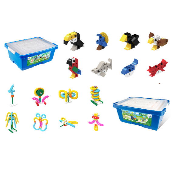 1) Набор "Кубики - окружающий мир" #7372 - 1 набор. В состав набора входит 888 деталей, из которых можно собрать 40 различных моделей по инструкции и неограниченное количество моделей по воображению ребенка. Детали хранятся в пластиковом контейнере с сортировочным лотком, собранные модели можно закреплять на крышке, в которой есть механизм фиксации. Размер контейнера 420*325*165 мм.