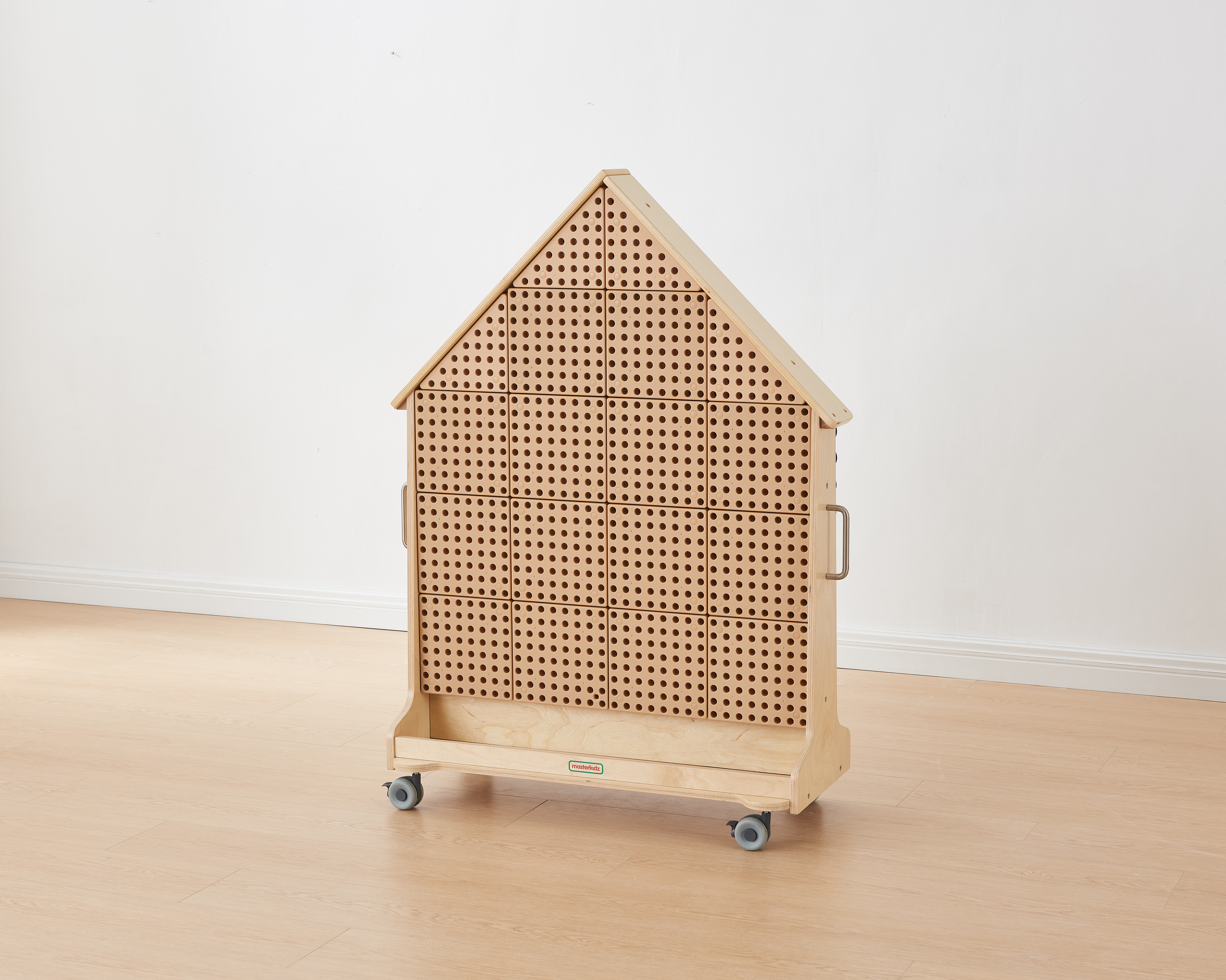 STEM-стена – открытая образовательная система. Представлена в виде передвижного вертикального основания в форме дома с крышей, подвижность которого обеспечивается 4 колесами.