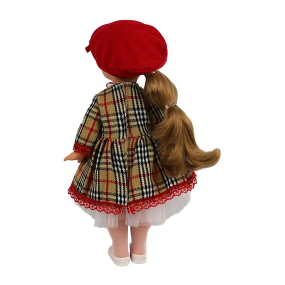 Высота куклы: 30 см. Подвижные руки и ноги. Закрывающиеся глаза. Прошитые волосы из нейлона.