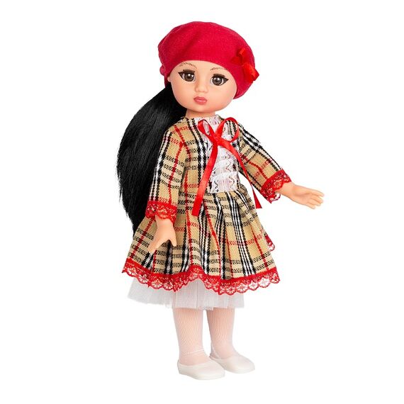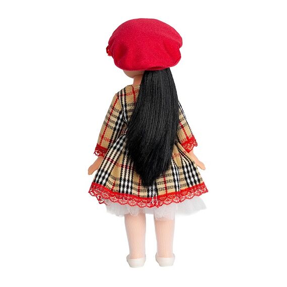 Кукла Аиша Кэжуал 1 может стать настоящей подружкой для ребёнка. Ее милый образ девочки с длинными, блестящими волосами и в модной одежде придется по душе вашим детям. Уникальный молд, выполненный с учётом национальных особенностей, подчёркивает индивидуальность куклы Аиша. В комплект одежды куклы входит: нарядное платье в клеточку с бантом, красный берет, колготки. Комплект дополняют туфли.