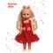 Наряд включает в себя: красное пышное платье с бантиками, белые туфельки, бант на голову, и трусики.