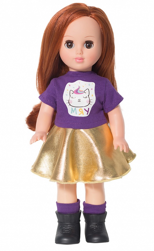 В комплект одежды коллекции «Яркий стиль2» входит: футболка из трикотажа с наклейкой "мяу". Юбка из трикотажной парчи.На ногах носочки и ботиночки. Игровые и развивающие возможности куклы.