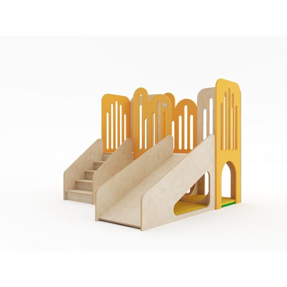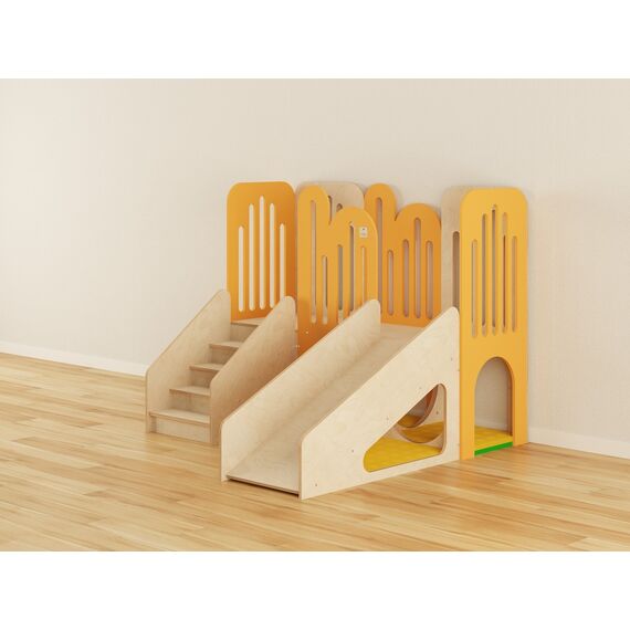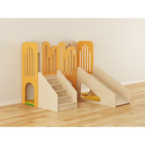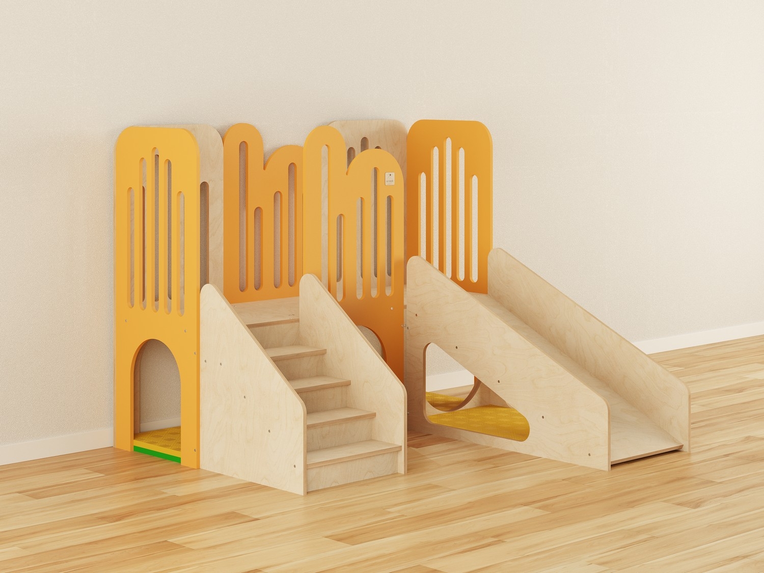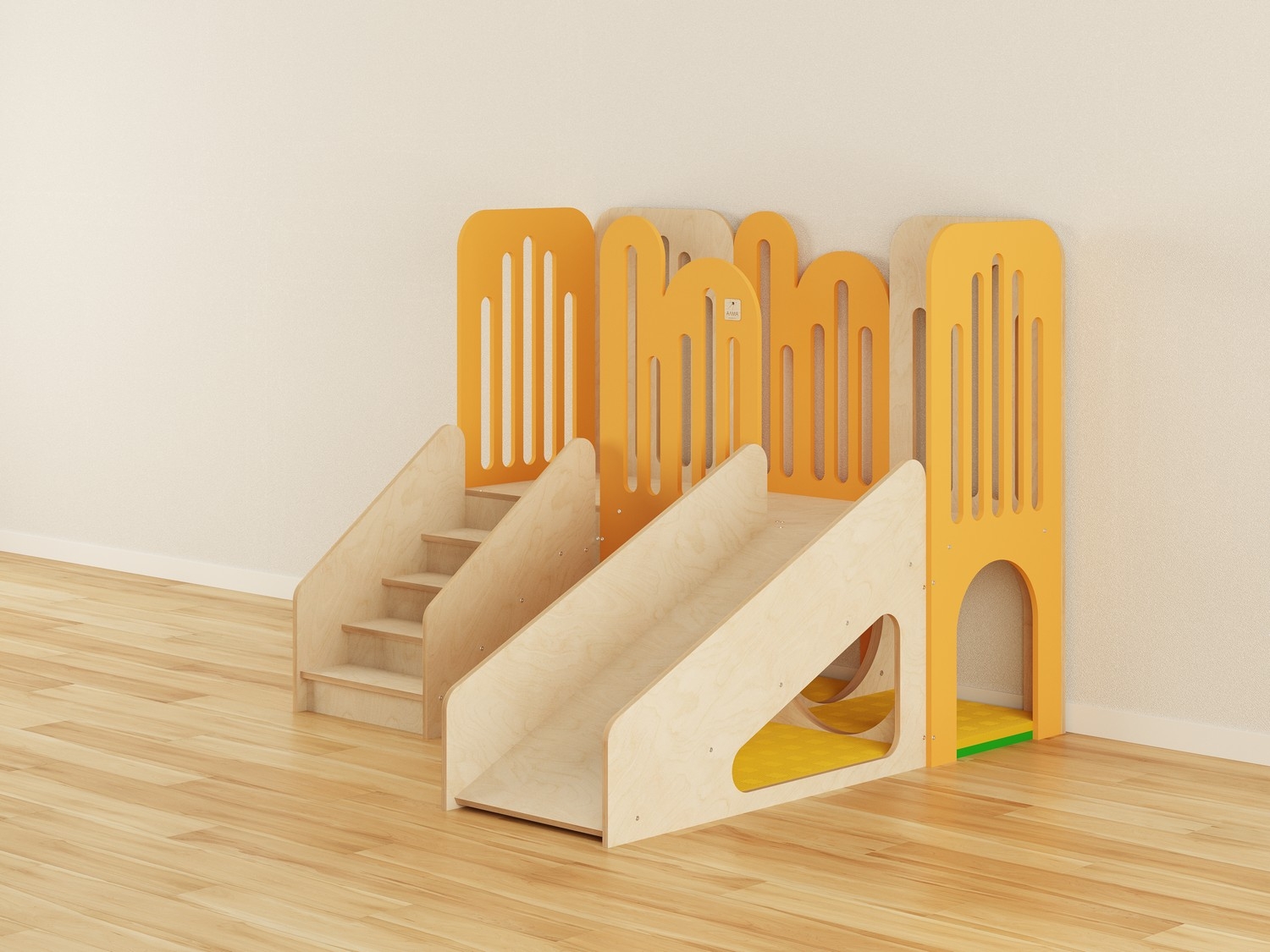Каждый элемент конструкции соответствует актуальным ГОСТам на детскую мебель, требованиям СанПиН и пожарной безопасности, рекомендациям ФОП ДО по созданию развивающей среды для детей раннего возраста. Гладкие поверхности просты в уходе: достаточно влажной уборки для поддержания высокого уровня гигиены. Универсальный дизайн позволяет установить комплекс в любое пространство.