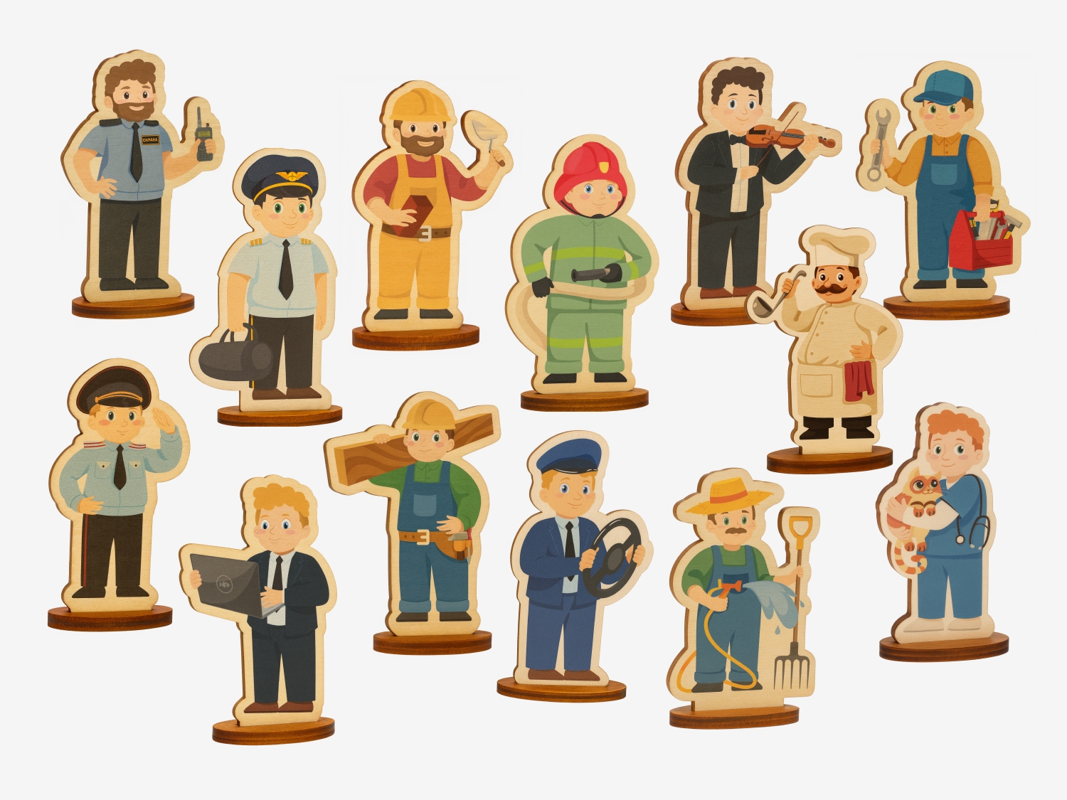 Фигурки выполнены из высококачественной фанеры и тщательно отшлифованы. Закругленные края обеспечивают безопасность во время игры, а устойчивое основание позволяет удобно расставлять фигурки. Изображения нанесены современным методом печати с использованием красок, устойчивых к истиранию и выцветанию даже при активной эксплуатации.