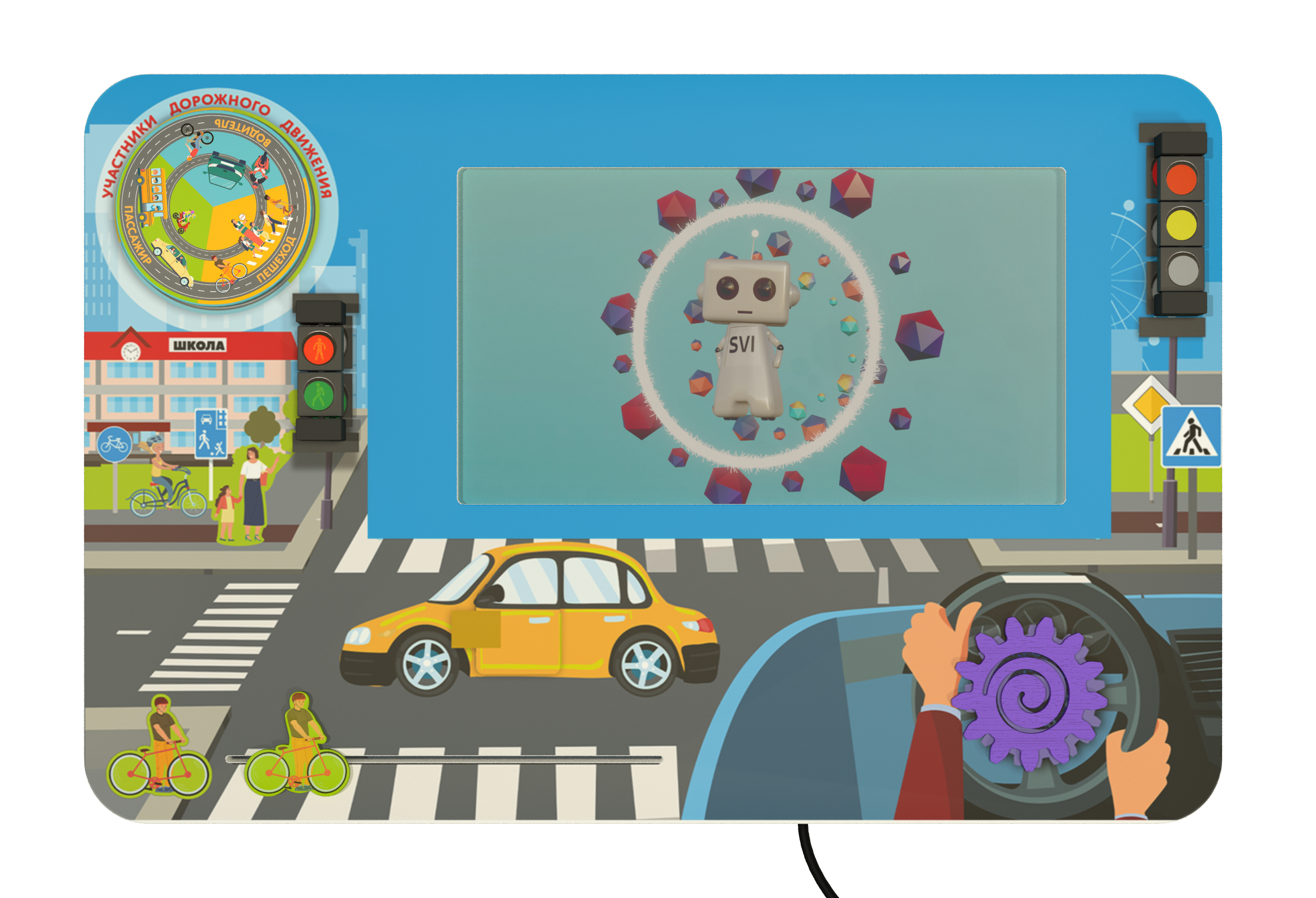 Настенный интерактивный комплекс: Бизиборд ПДД (дидактическая панель Городская Среда. Детский сад) с ПК