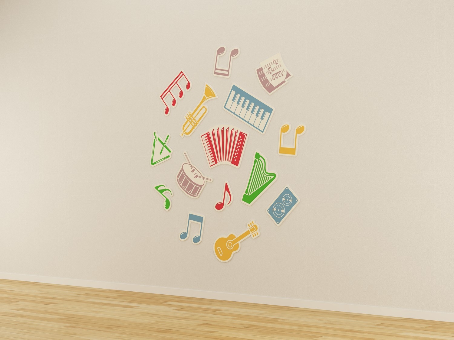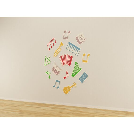 Набор декоративных панелей, выполненных в музыкальной тематике. Подходит для оснащения детского сада, общеобразовательной и музыкальной школ и других учреждений для создания развивающей предметно-пространственной среды.