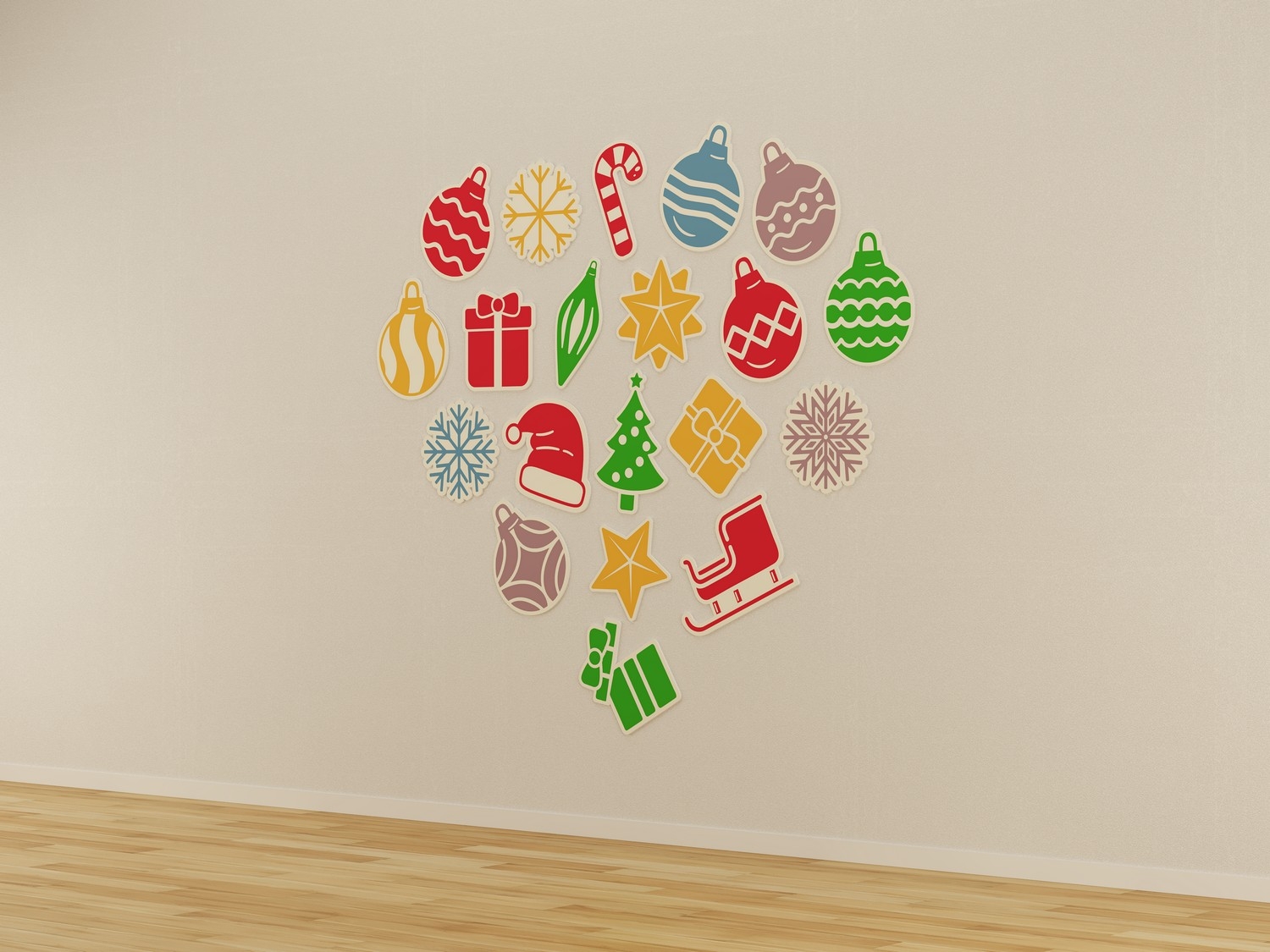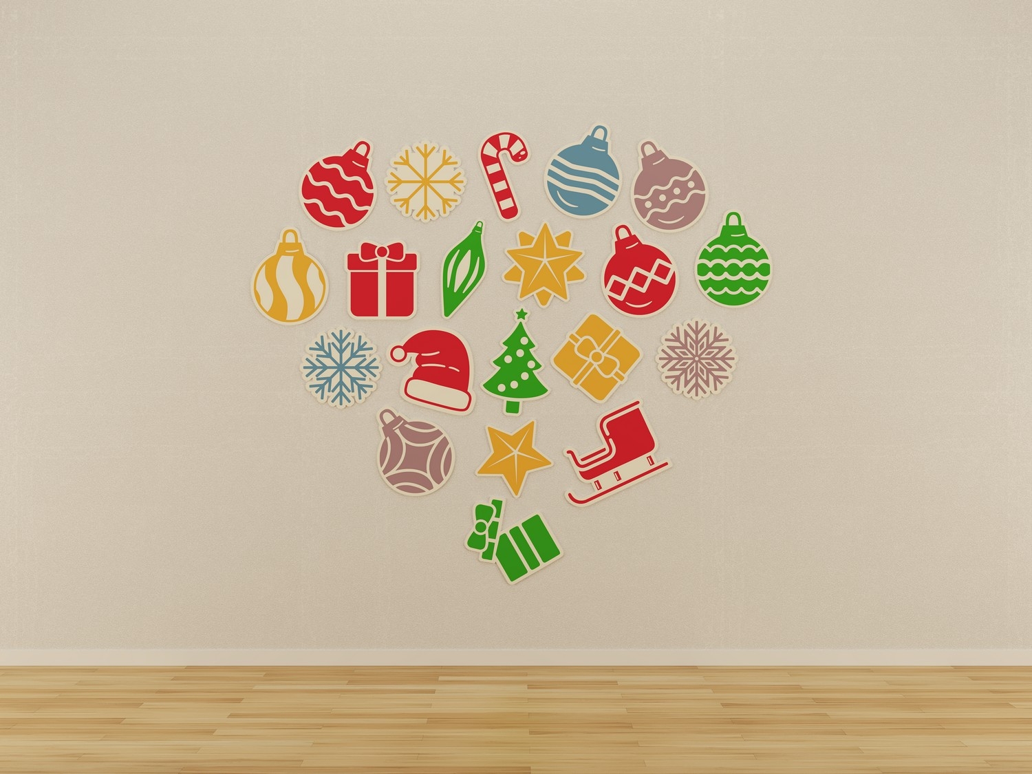 Панели помогают завершить оформление помещения в тематике праздника Нового года. Сменить одни панели на другие легко, потому что они монтируются на стойкие липучки. Для обновления интерьера нужно снять один набор панелей и на их место разместить другие из нужной тематики.