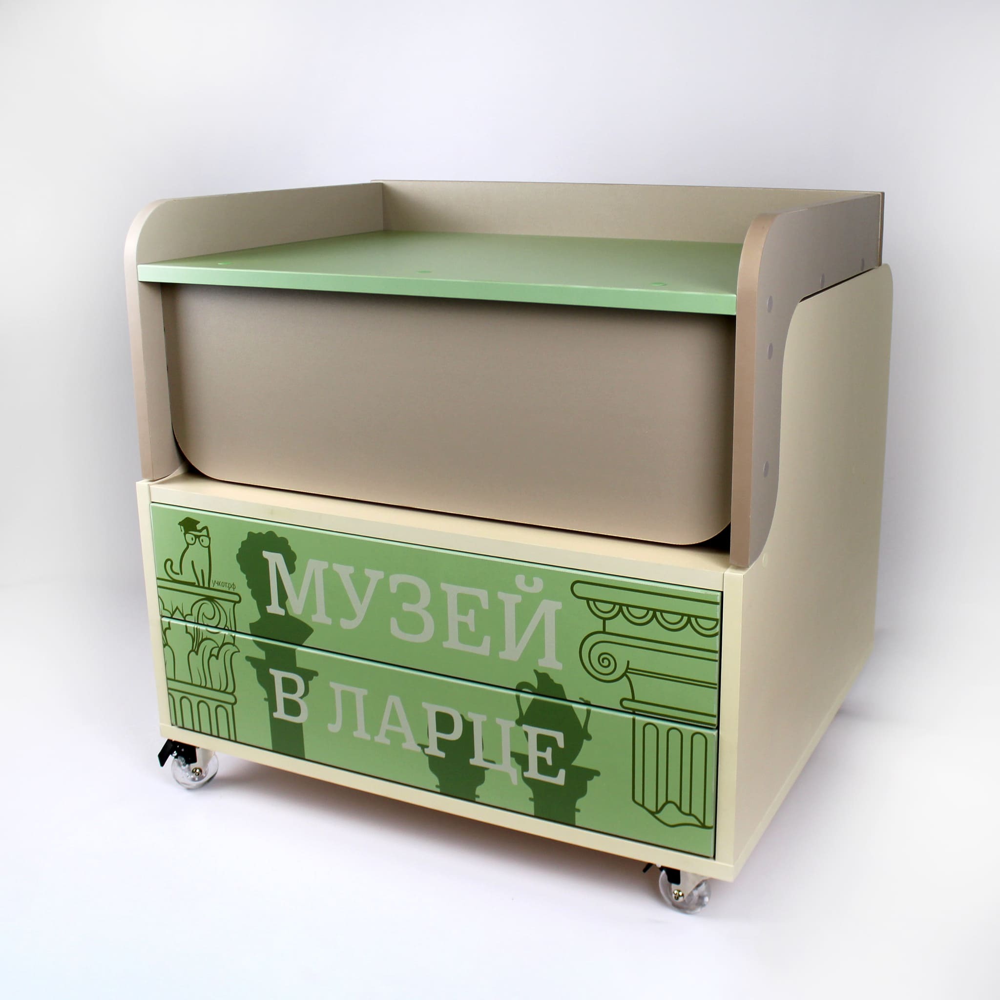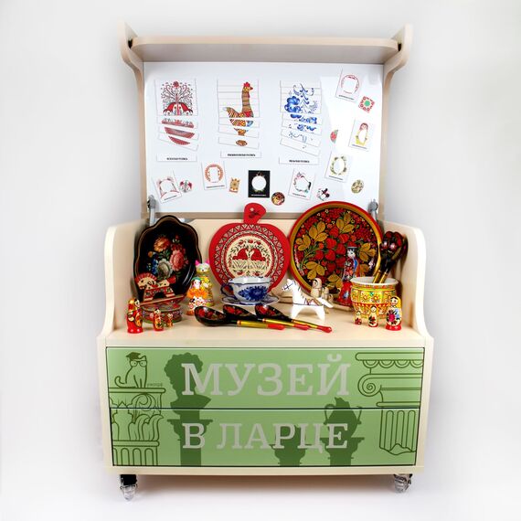 Музей в ларце - уникальное, трансформируемое пособие, которое послужит игровой зоной для детей, выставочным центром, наглядным пособием для проведения занятий. Ларец оснащен полочками, отсеками, ящиками для хранения наглядных пособий, дидактических материалов, образцов декоративно - прикладного искусства и игр.