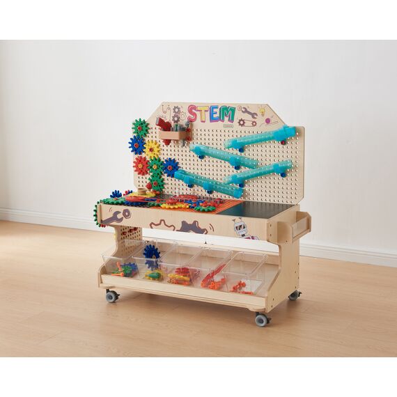 Мобильный STEM-стол - идеальное дополнение к любому дошкольному или начальному школьному классу. Подходит для развития мелкой моторики рук и зрительно-моторной координации, логического и творческого мышления, навыка конструирования и воображения, знакомства со STEM-обучением.