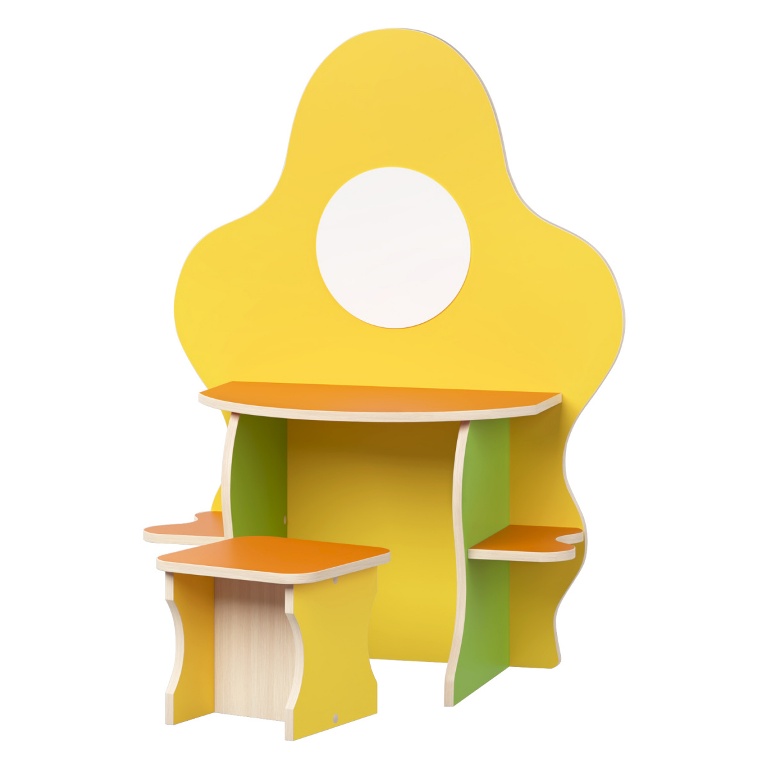 Красочный уголок для сюжетно-ролевых игр, поможет детям развить творческие навыки, разнообразить фантазию, воспитать стремление к опрятности и чистоте, закрепить знания о профессии парикмахера. Уголок имеет зеркало закругленные полочки для расчесок, щеток, бутылочек.