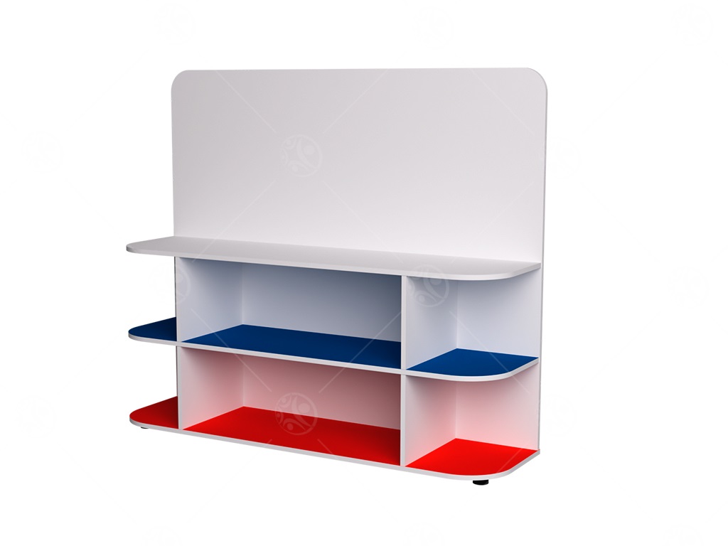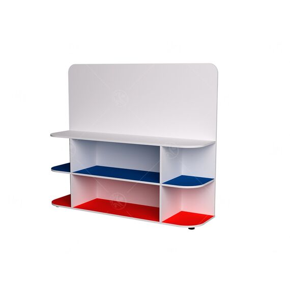 Стеллаж "Триколор "за счет оригинальной конструкции может служить украшением группы. Имеет открытые полочки.