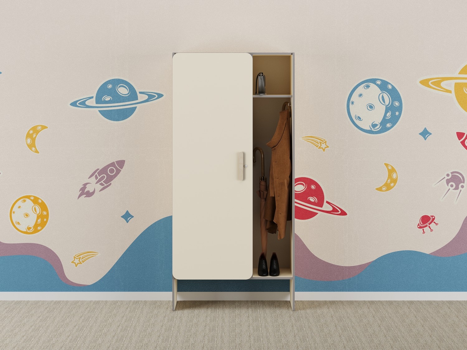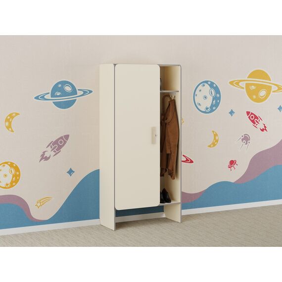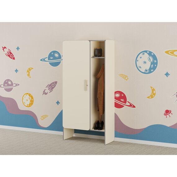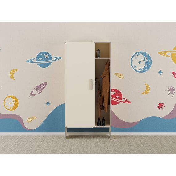 Шкаф изготовлен из ЛДСП с безопасными скругленными краями. Этот материал делает изделие не только прочным и устойчивым к влаге, моющим и дезинфицирующим средствам, но и эстетически привлекательным: фасады из ЛДСП отличаются насыщенными и яркими цветами, которые придают мебели выразительность и добавляют интерьеру контрастность. Поверхность проста в уходе — ее достаточно протирать влажной салфеткой. Ламинат защищает плиту от мелких сколов и царапин, а доступность материала делает шкаф бюджетным и практичным решением для оснащения помещений детских садов.