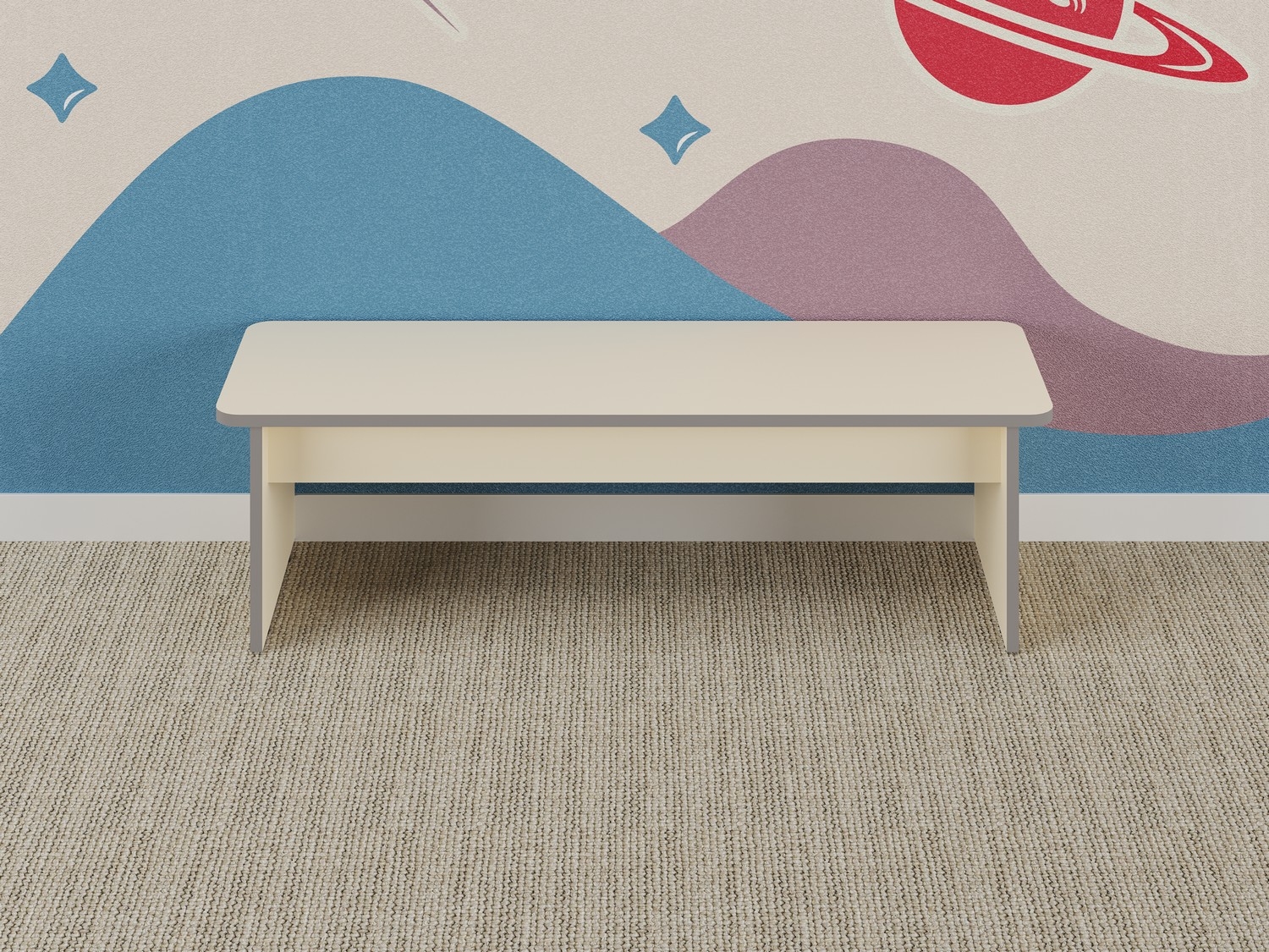Скамейка изготовлена из ЛДСП, которая не только устойчива к влаге и средствам для уборки, но и отличается насыщенными и яркими цветами фасадов, добавляющими интерьеру выразительность и контрастность. Поверхность мебели проста в уходе — ее легко протирать влажной салфеткой. Ламинат надежно защищает плиту от мелких сколов и царапин, а доступность ЛДСП делает эту мебель бюджетным и практичным решением для оснащения детских садов.