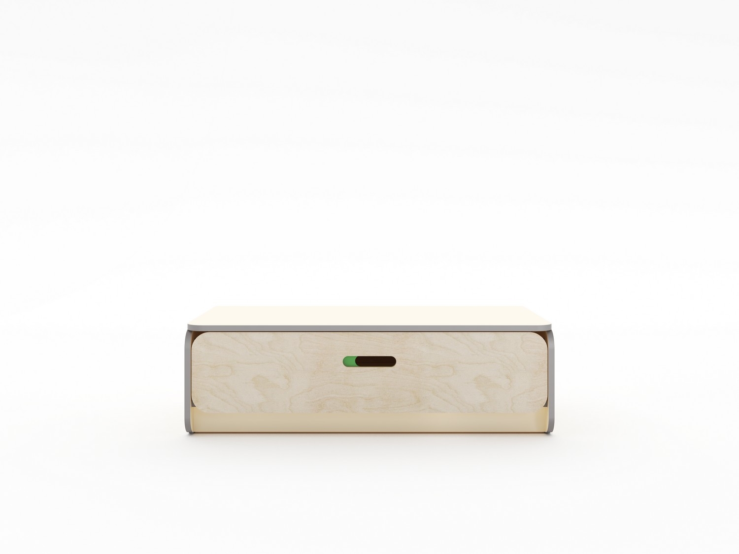 В тумбочке предусмотрена открытая верхняя полка для легкого доступа к материалам и вместительный выдвижной ящик для систематизации различных предметов — от канцелярских принадлежностей до развивающих пособий.