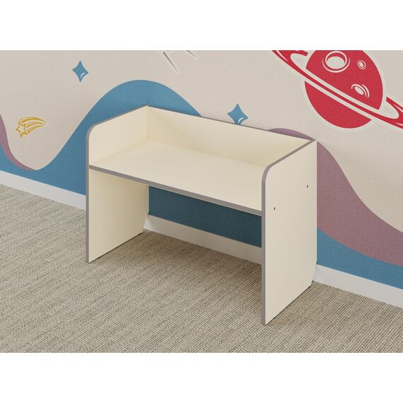 Изделие выполнено из ЛДСП с безопасными скругленными краями. Этот материал сочетает практичность и долговечность: он устойчив к влаге, моющим и дезинфицирующим средствам, благодаря чему стол сохраняет аккуратный внешний вид даже при интенсивной эксплуатации. Фасады из ЛДСП отличаются насыщенными и яркими цветами, которые делают мебель выразительной и современной, добавляют контраст в интерьер и помогают создать привлекательное пространство для малышей.