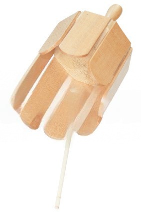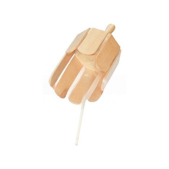 Ксилофон балийский малый выполнен в форме бочонка и имеет деревянные пластины разной длины. Под основанием диаметром 11 см достаточно удобная ручка. В комплекте палочка с шариком на конце.
