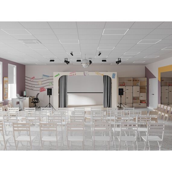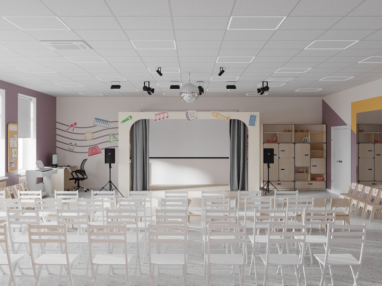 Комплексное решение под ключ для организации современного и функционального актового зала в детском саду, ДОУ, школе, развивающем центре и другом образовательном учреждении для детей.