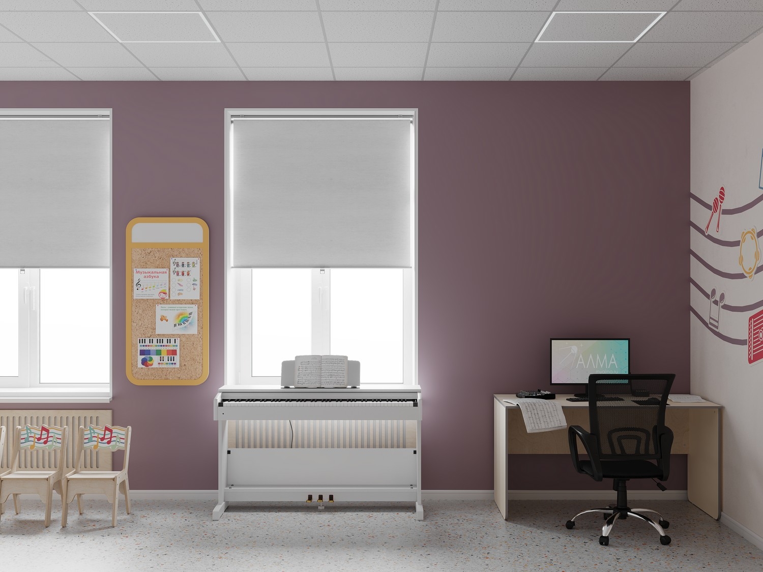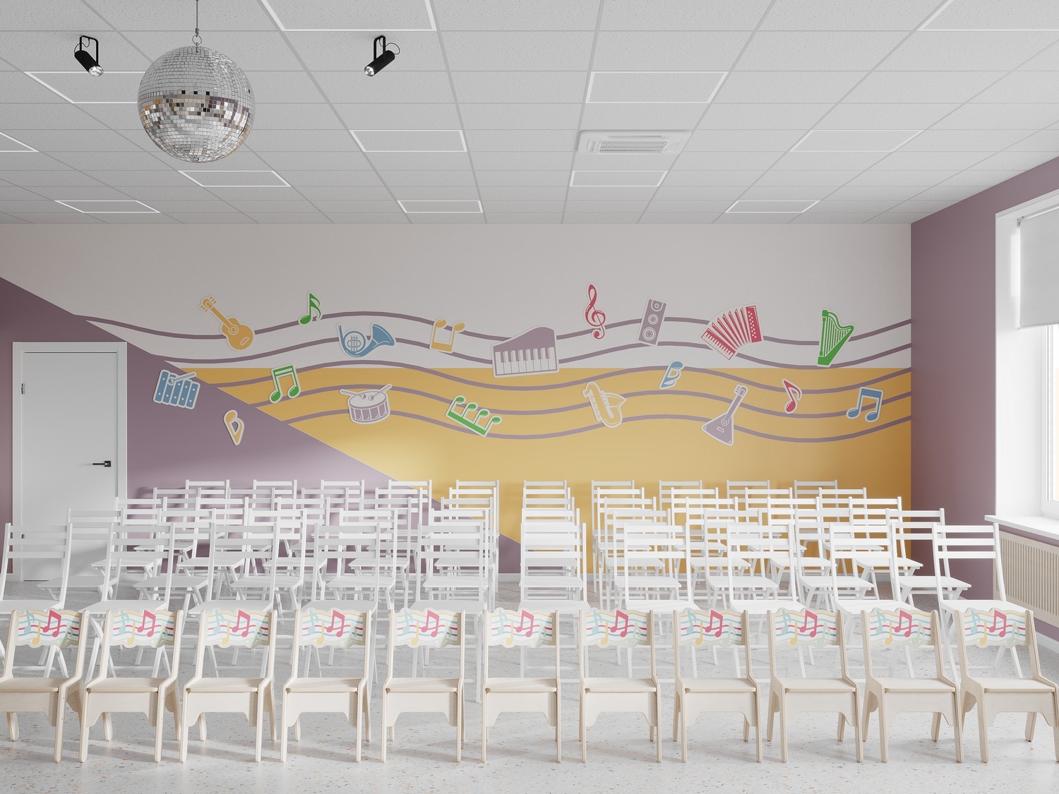 Наполнение готового музыкального зала тщательно продумано методистами и соответствует требованиям ФГОС ДО, СанПиН и правилам пожарной безопасности. Мы собрали все необходимое для эффективной работы педагогов и комфортных, продуктивных занятий по музыке и танцам для детей.