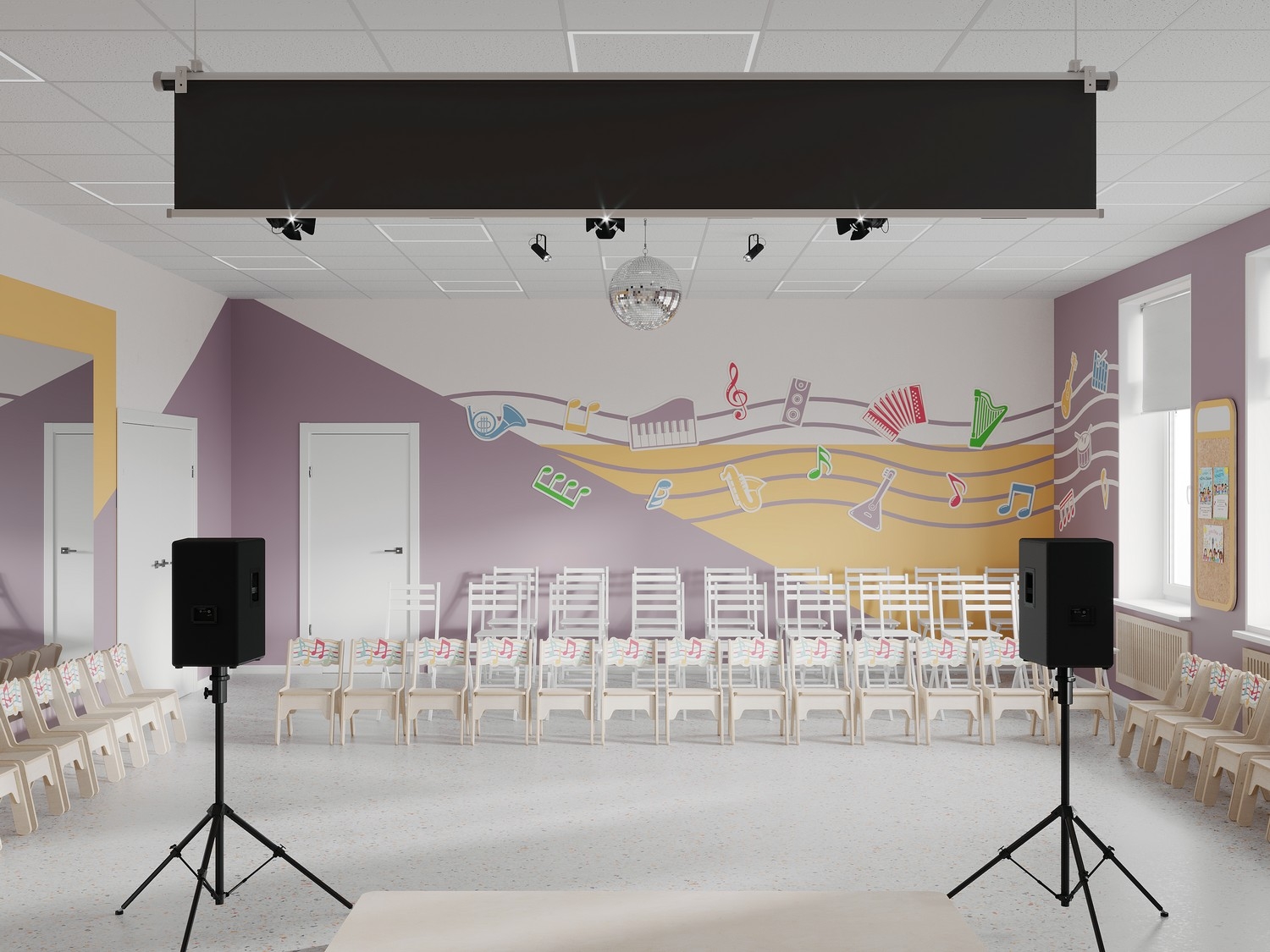 Комплексное решение под ключ для организации современного и функционального актового зала в детском саду, ДОУ, школе, развивающем центре и другом образовательном учреждении для детей.